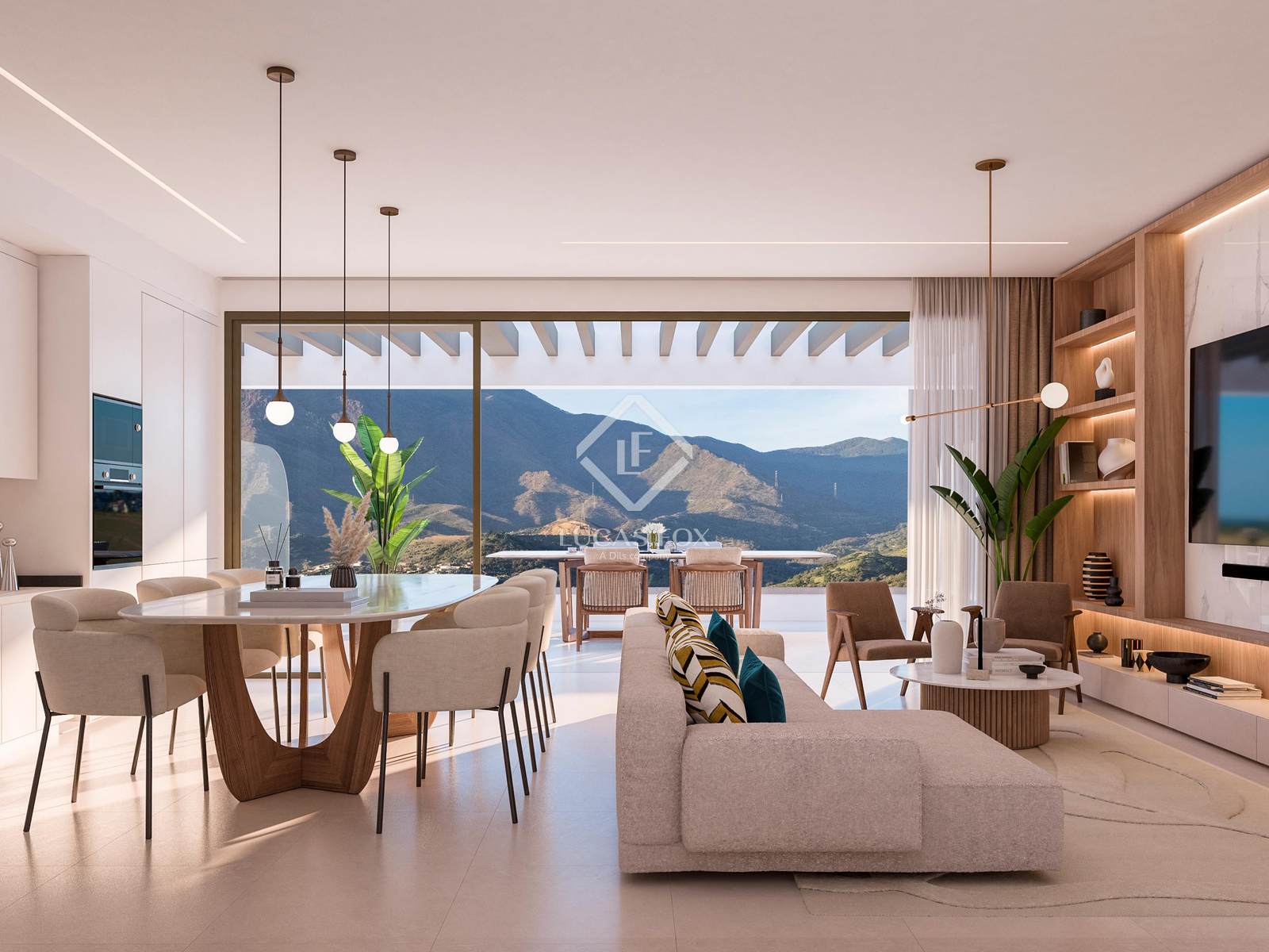 Every home is crafted with open-plan interiors, floor-to-ceiling windows, and expansive terraces, seamlessly merging indoor and outdoor living. Natural light floods each space, highlighting premium finishes and framing panoramic views of both the Mediterranean and the mountains.