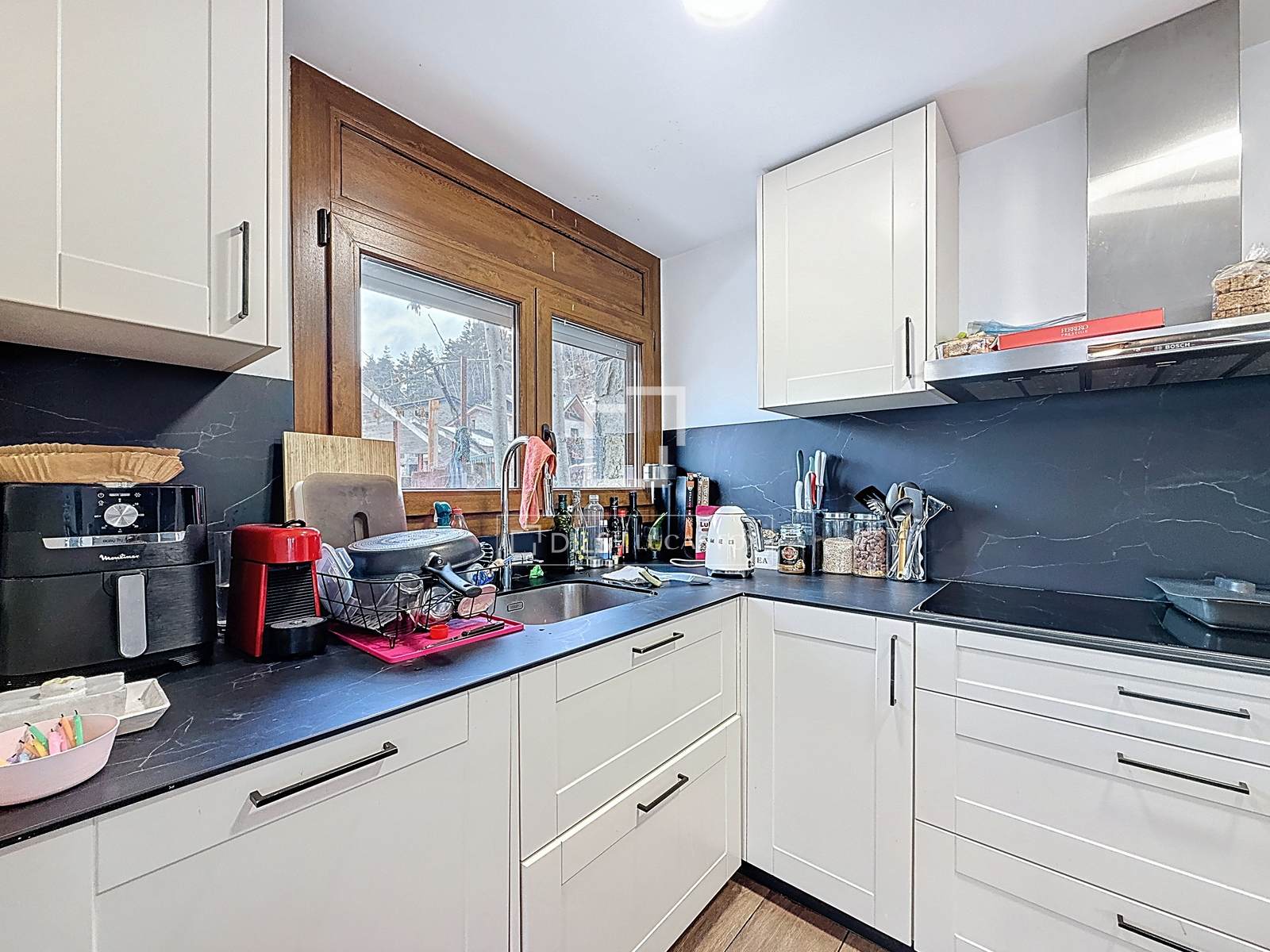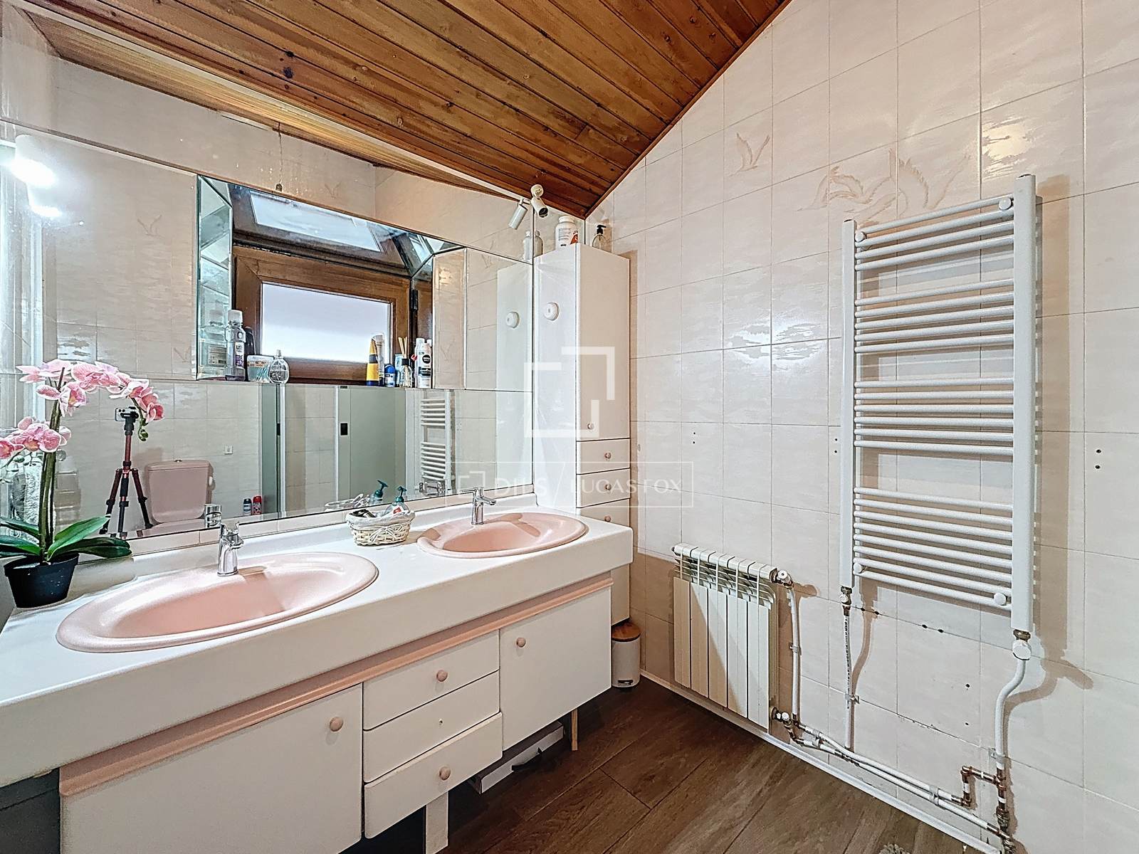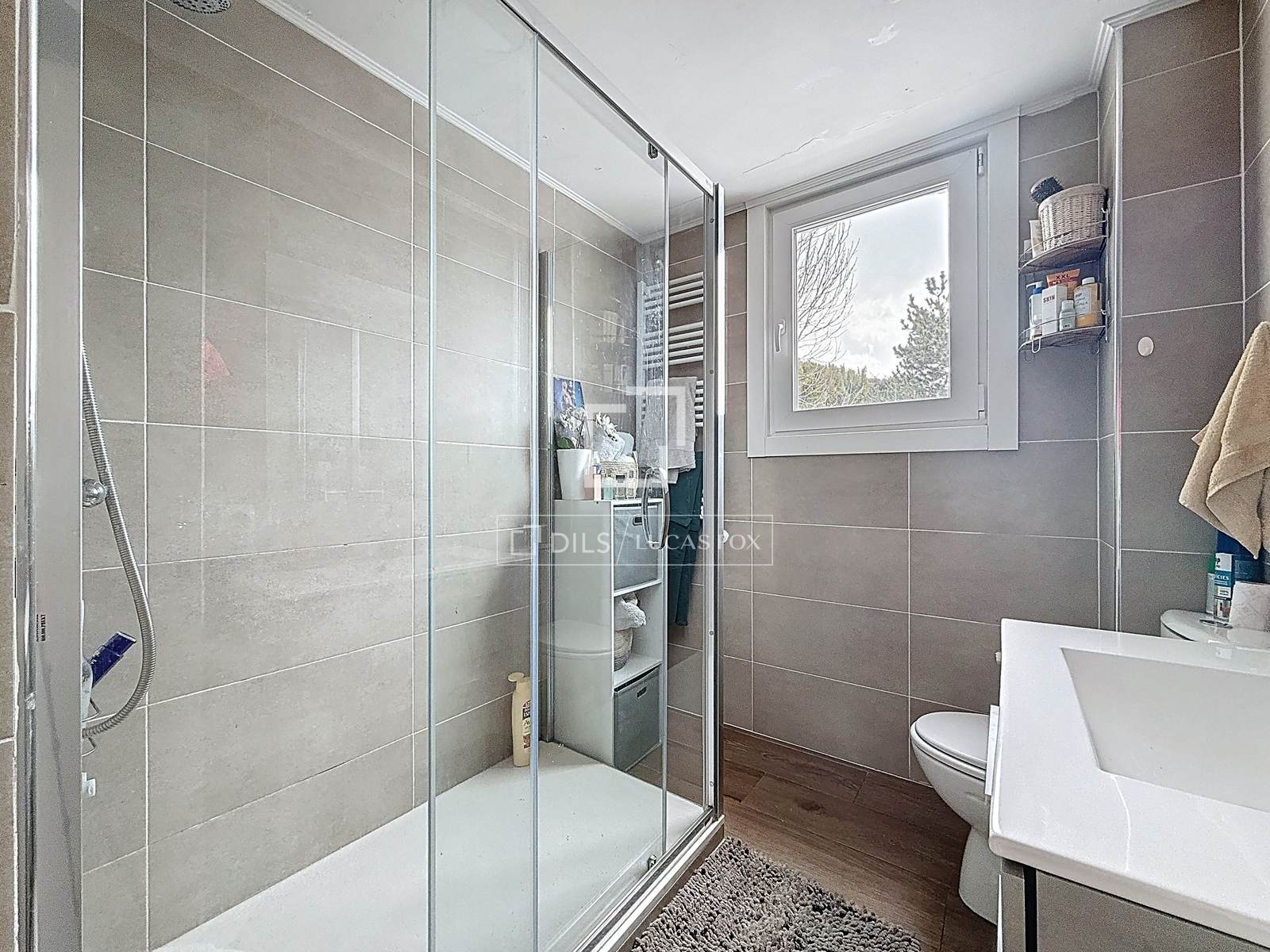 In the day area, we find a bright, fully equipped open-plan kitchen with a central island, which flows seamlessly into the inviting living-dining room with a fireplace. This entire space benefits from large windows that provide abundant natural light and offer magnificent views of the surrounding mountains. A full bathroom completes this area.