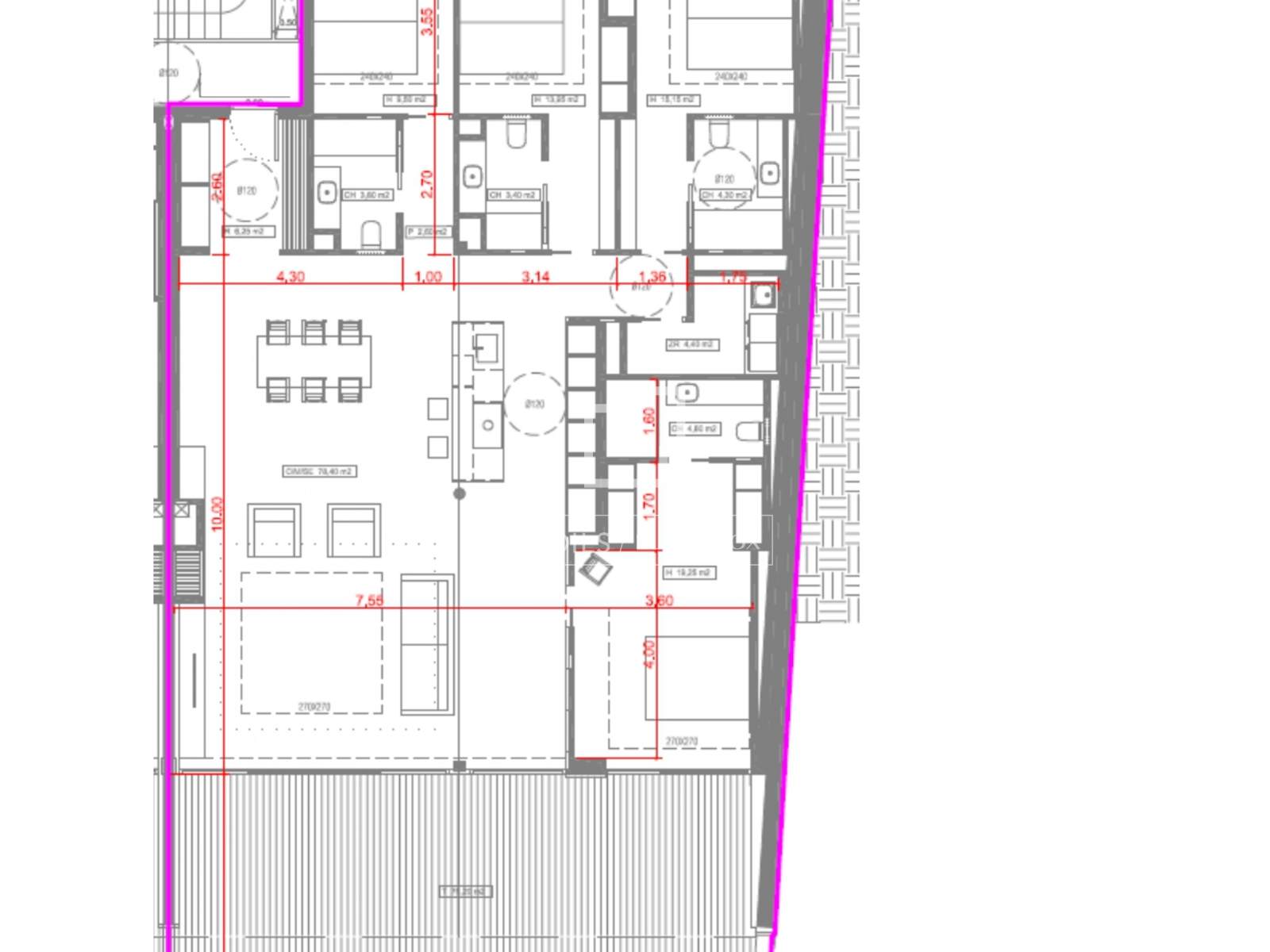 The night area offers four double bedrooms, all en suite with private bathroom bathrooms and built-in wardrobes, and three of them share access to an exclusive private interior terrace. The master suite, located at the other end of the property, also features a dressing room and access to the main terrace.