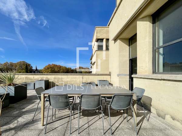 Located in one of the most prestigious areas of the Écusson district, this 130 m² apartment opens onto an intimate, private 30 m² terrace facing east. It boasts magnificent volumes and a unique charm: herringbone parquet flooring, French-style decorated ceilings, wood paneling, remarkable marble fireplaces, stained-glass windows, large balconies, adjoining rooms, and a service entrance.