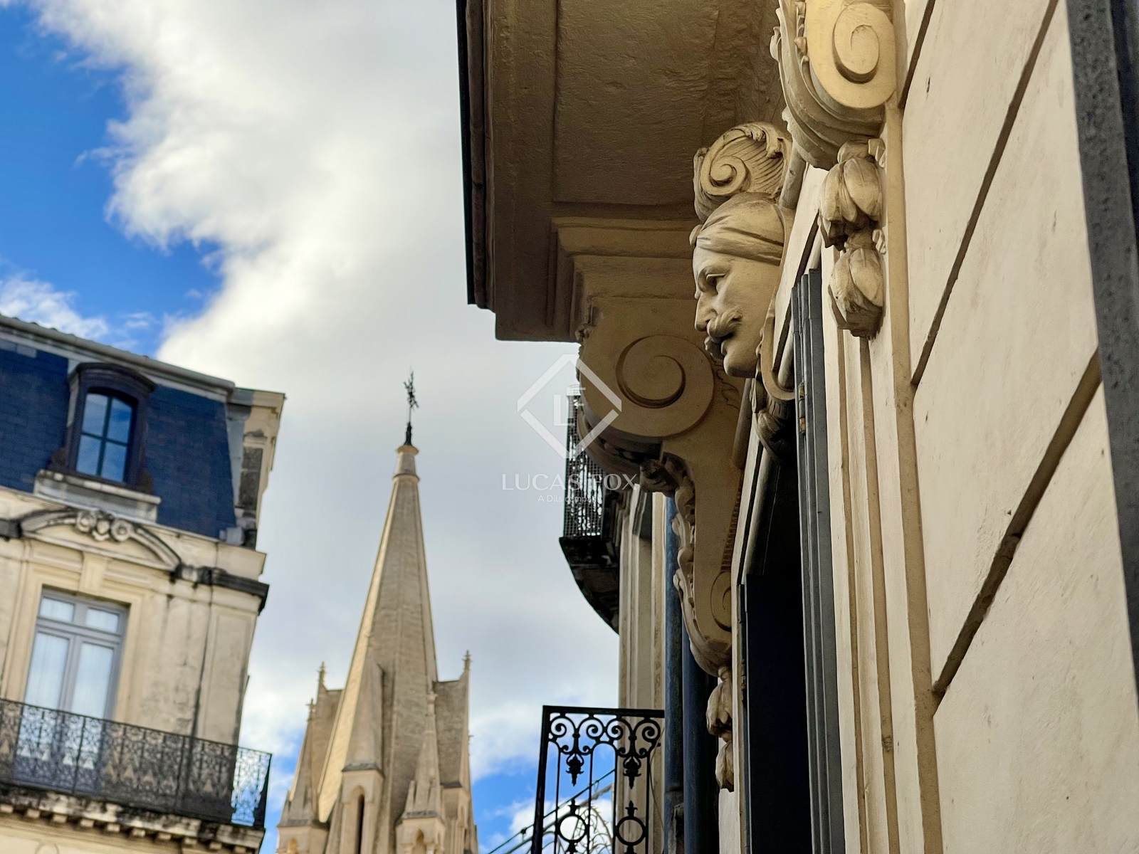 The 120 square meters that comprise it have preserved the historical charm of the place: high ceilings, moldings and rosettes, Montpellier-style beams, fireplaces, and large decorated doors. Its continuous balcony offers a superb view of Rue Foch and its architecture, and a delightful glimpse of the Sainte-Anne church. Suitable for residential or professional use.