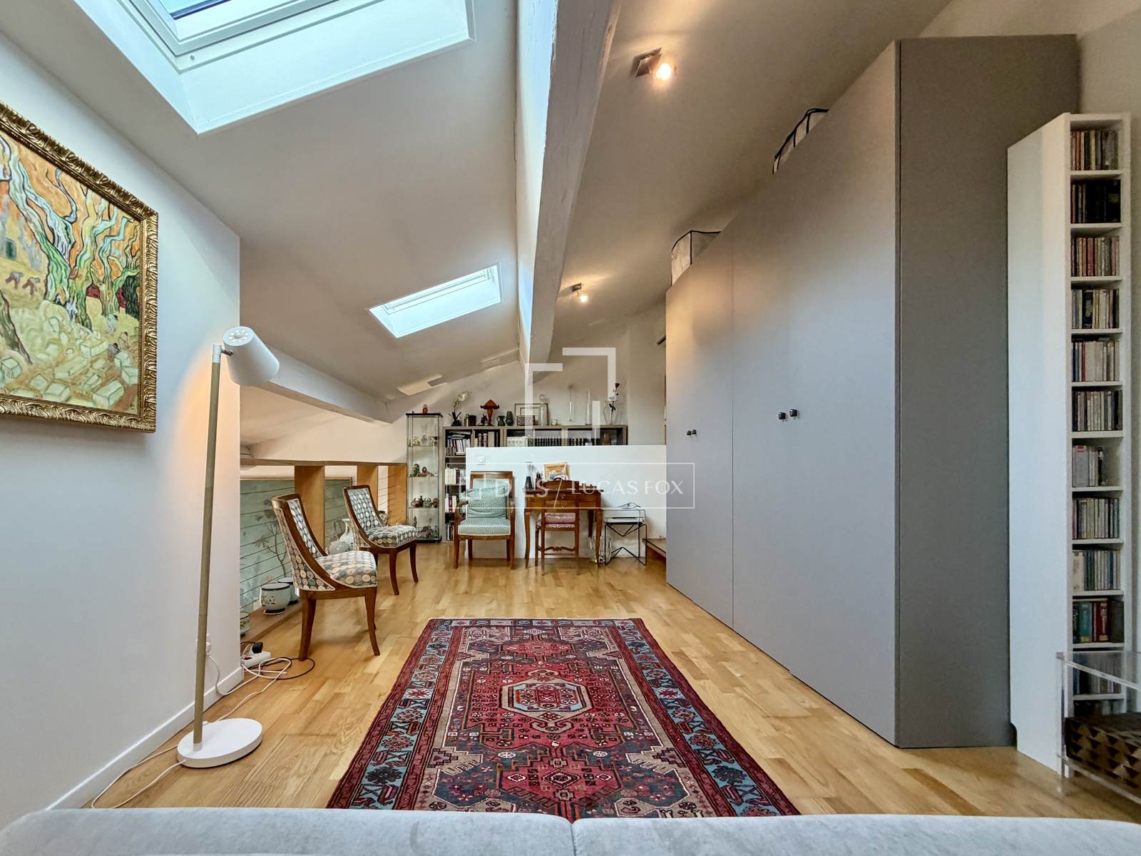 Upstairs, semi-open to the living room, there is an office and an open bedroom, a bathroom, a separate toilet and an additional room (spare bedroom, dressing room, storage...).
