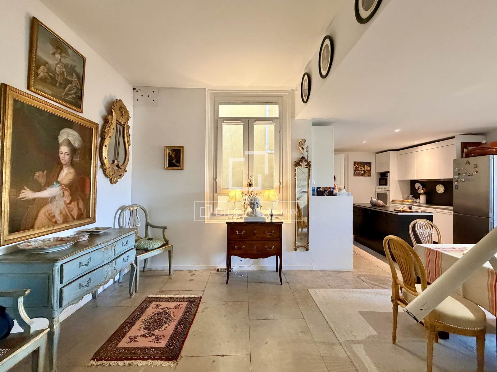Offering a privileged view over the rooftops of the Ecusson district and its monuments, this 104 sq m apartment is primarily laid out on one level. It comprises a spacious entrance hall, a cathedral-ceilinged living room with a balcony, an open-plan kitchen and dining area, a laundry room, and a guest WC. A bedroom with an en-suite bathroom is also located on this level.