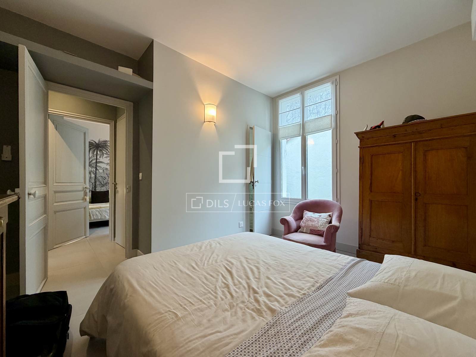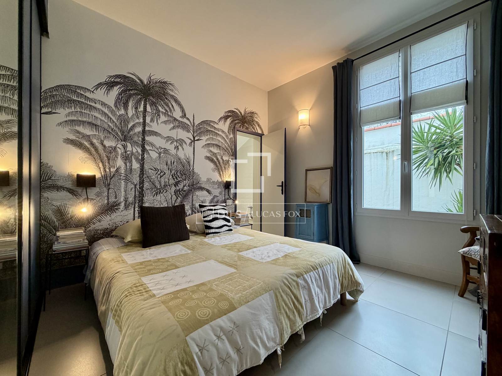 In this enclosed 400 m² garden with space for a pool, a renovated, single-story, 80 m² house. Built in 1950, it comprises an entrance hall, a double living room with a fireplace, a semi-open-plan eat-in kitchen, a utility room, and two suites, one with a bathroom and the other with a shower room.
