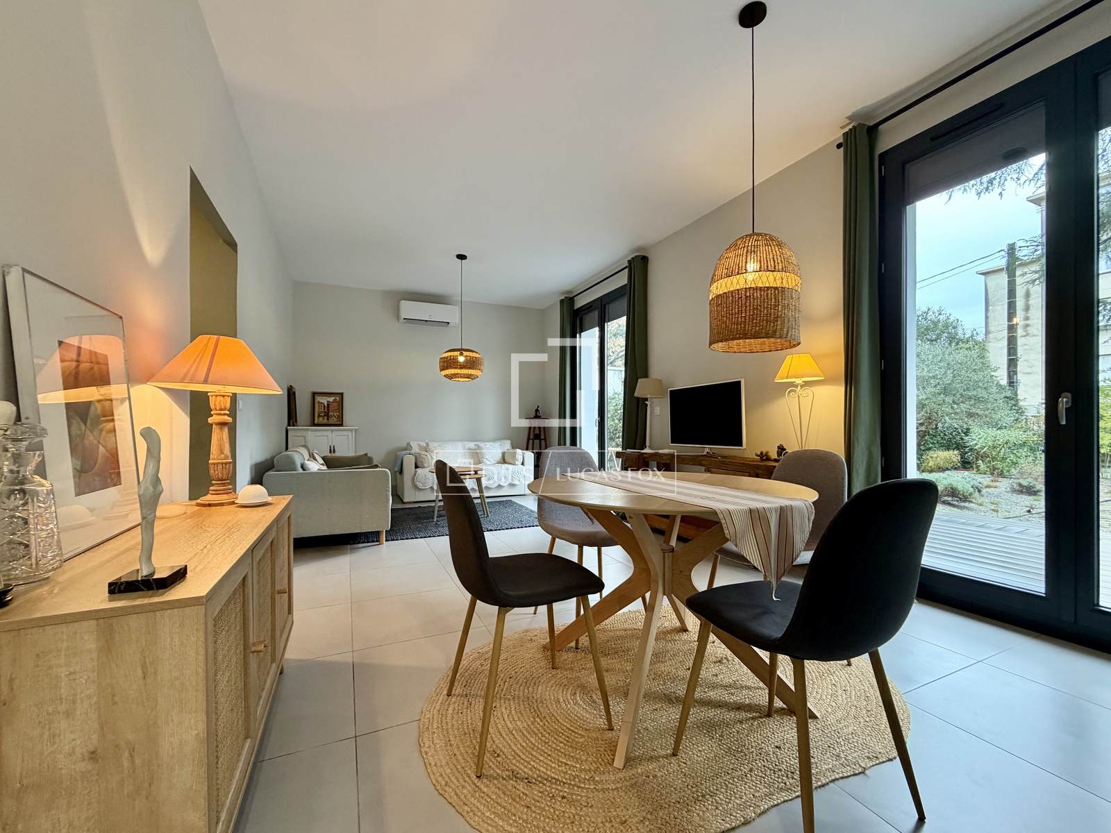 The property boasts optimal modern comforts: double-glazed windows, reversible air conditioning, insulation, and more. Facing primarily south, it is situated in a quiet and private setting. The interior spaces extend onto an approximately 80 sq m Ipe wood terrace and a landscaped garden (featuring succulents, an olive tree, and a large cedar) equipped with automatic watering. Two parking spaces are available within the garden.
