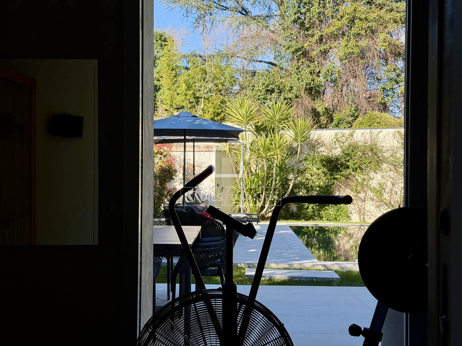 At the rear of the house, the terrace provides access to the swimming pool. The surrounding vegetation gives this space a relaxing atmosphere, right in the heart of the city.
