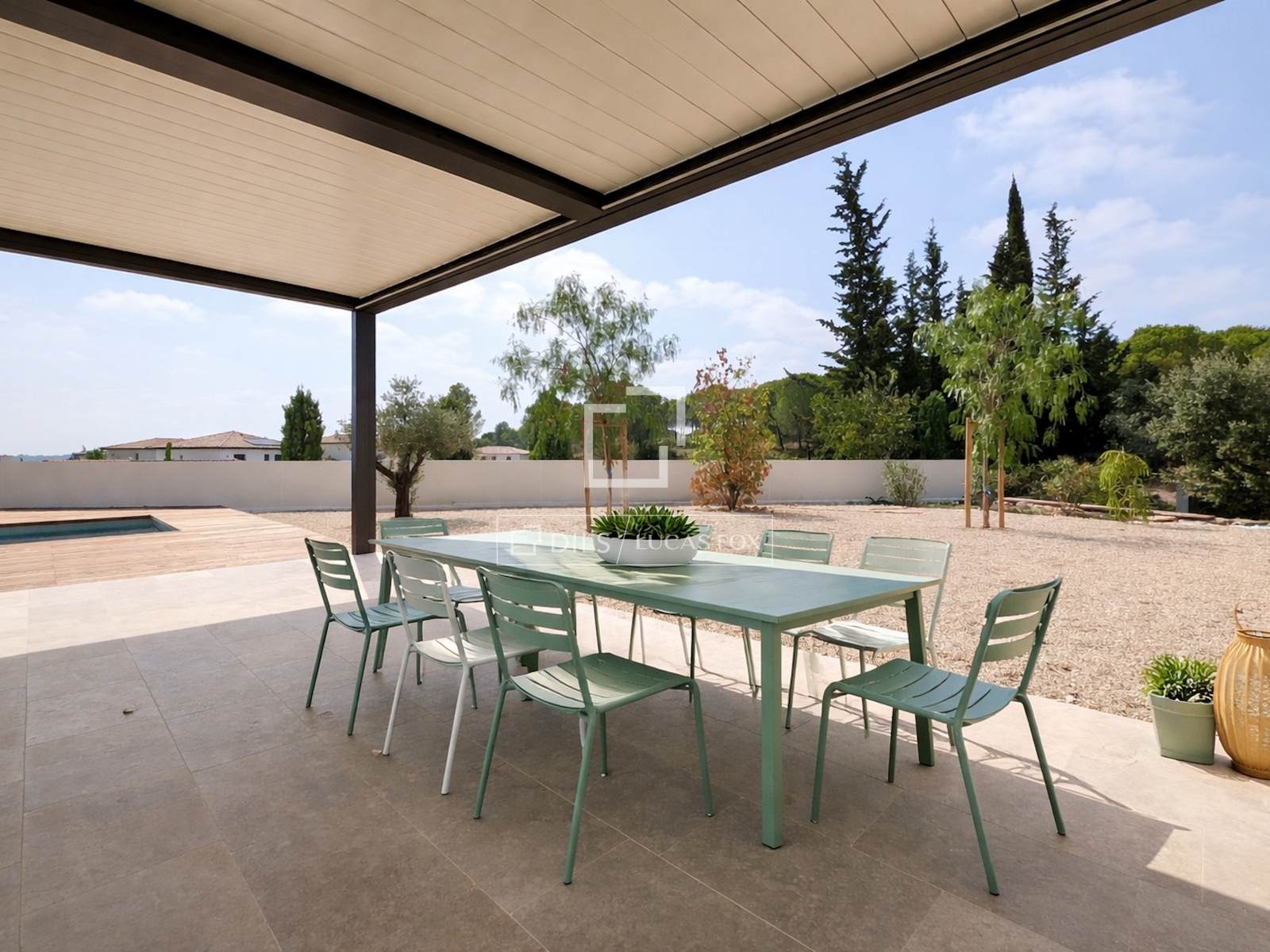 Halfway between Montpellier and Nîmes, 5 minutes from the motorway, exceptional new property mainly on one level with its landscaped grounds of 3600 m²