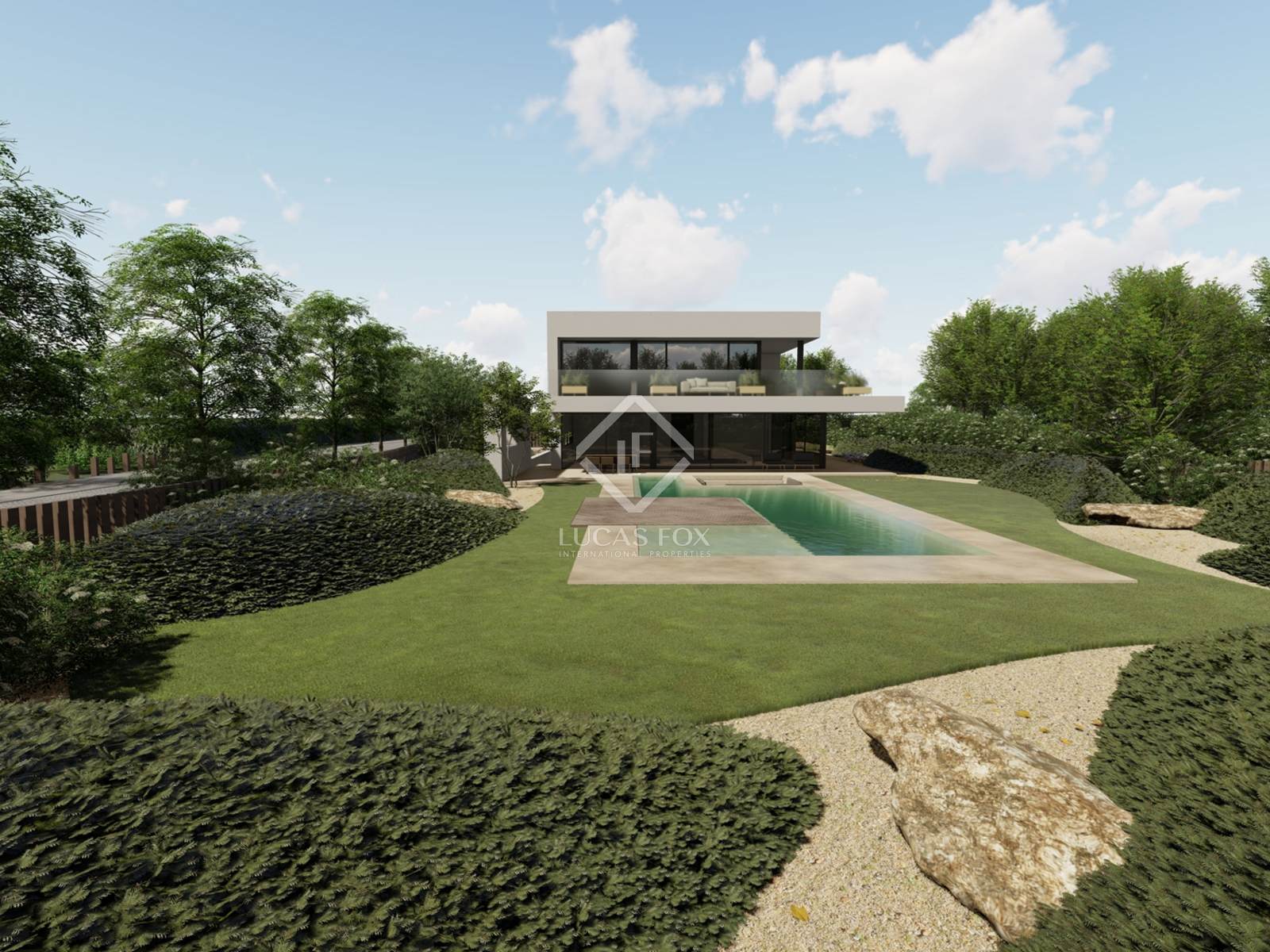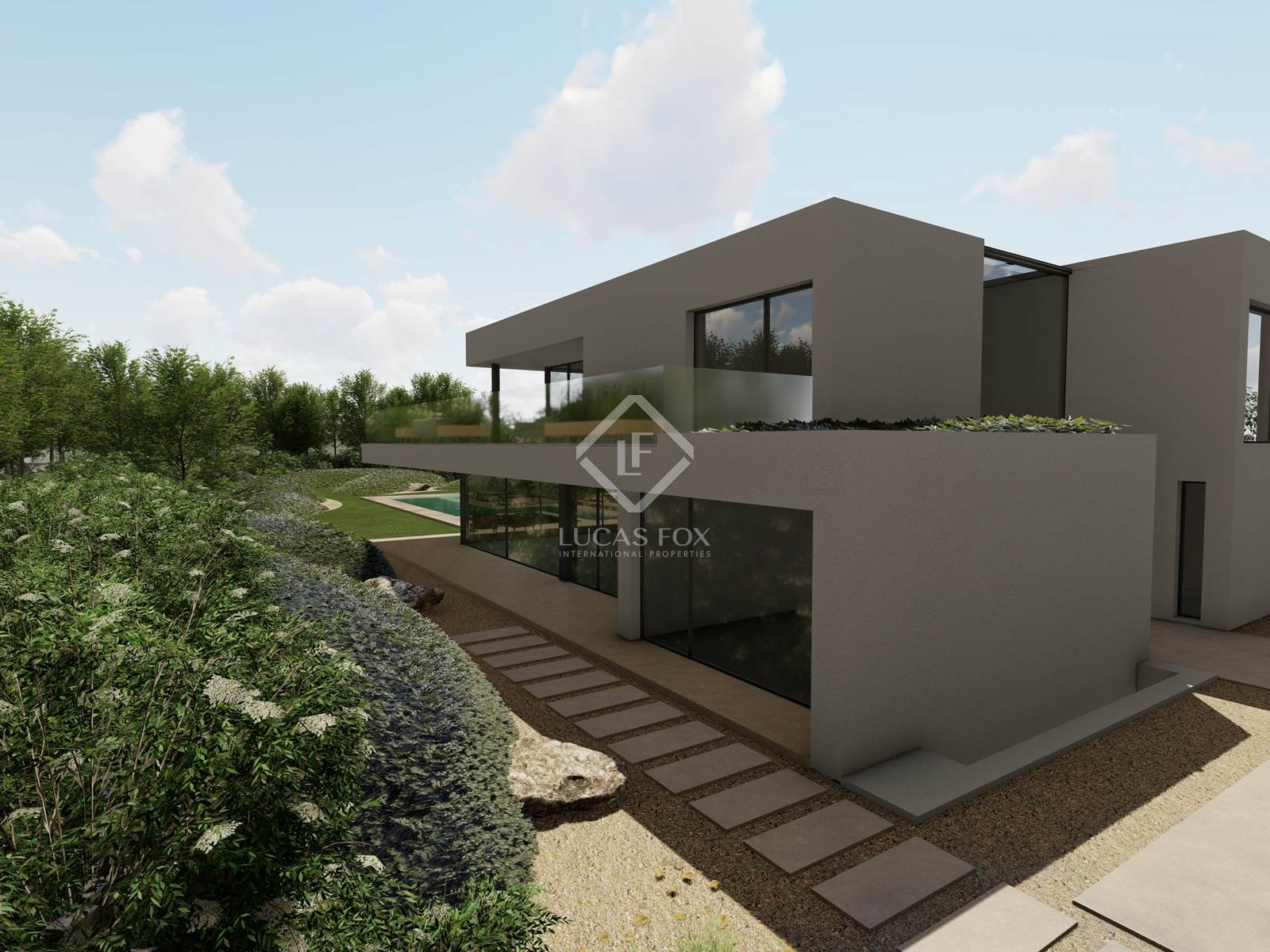 The project, by architect JJ Silva Garcia, develops and proposes a program for a house with “clean” and geometrically accentuated facades, giving it a contemporary and sober character.