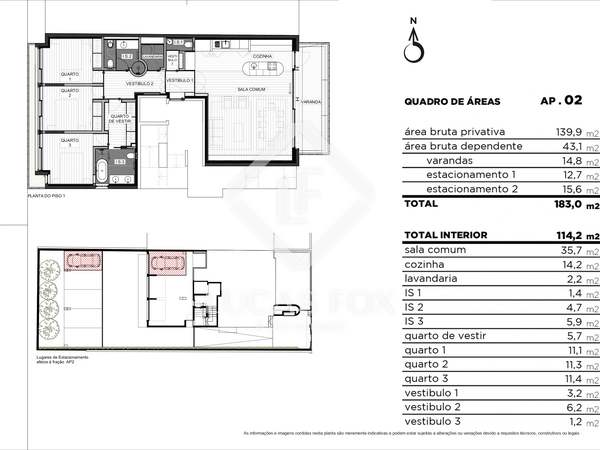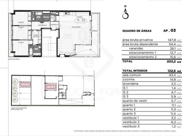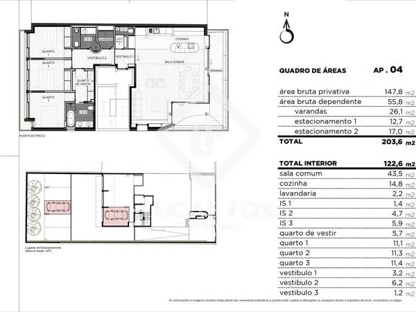 Two-bedroom apartment with a total area of 157.4 m2, of which 103.7 m2 corresponds to the gross private area of the unit, 41 m2 to the balconies and 12.7 m2 to the parking space.