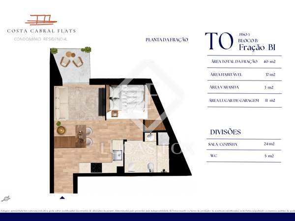 Studio apartment, with 35 m2 of private gross area, located in the new Brito Capelo and Roberto Ivens Building development.