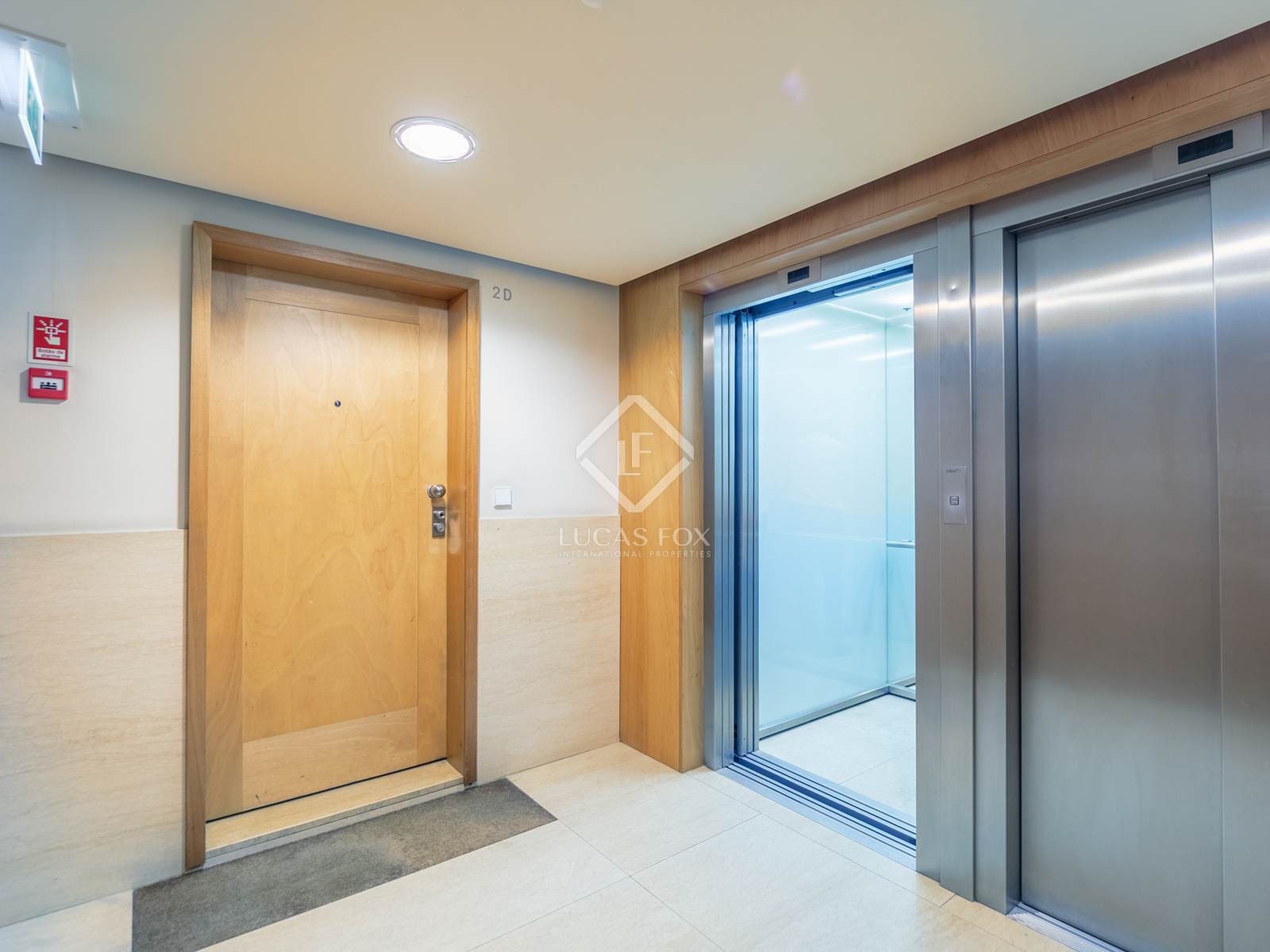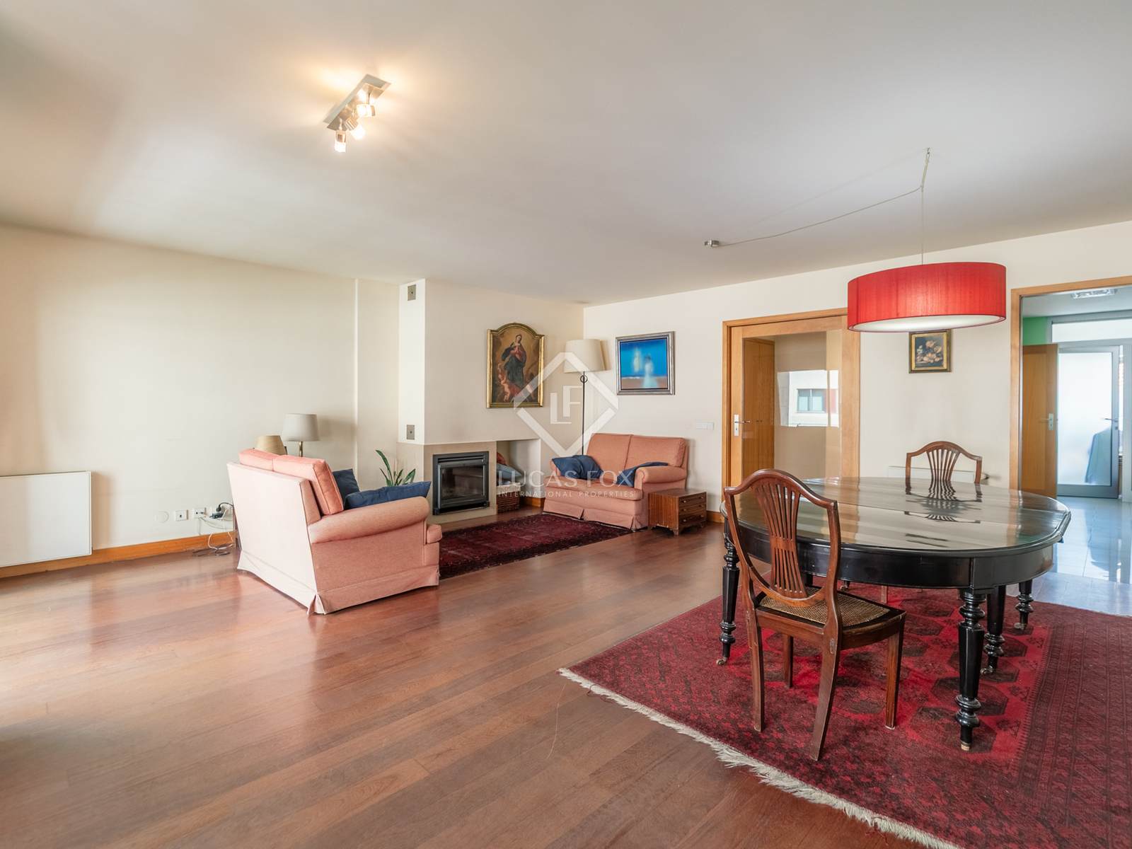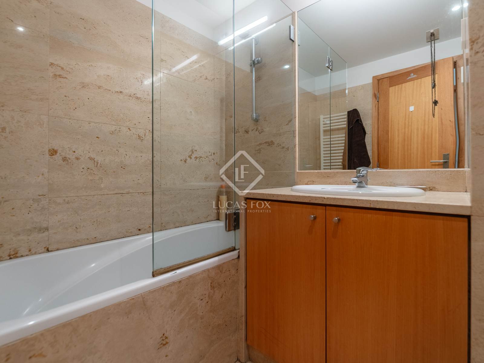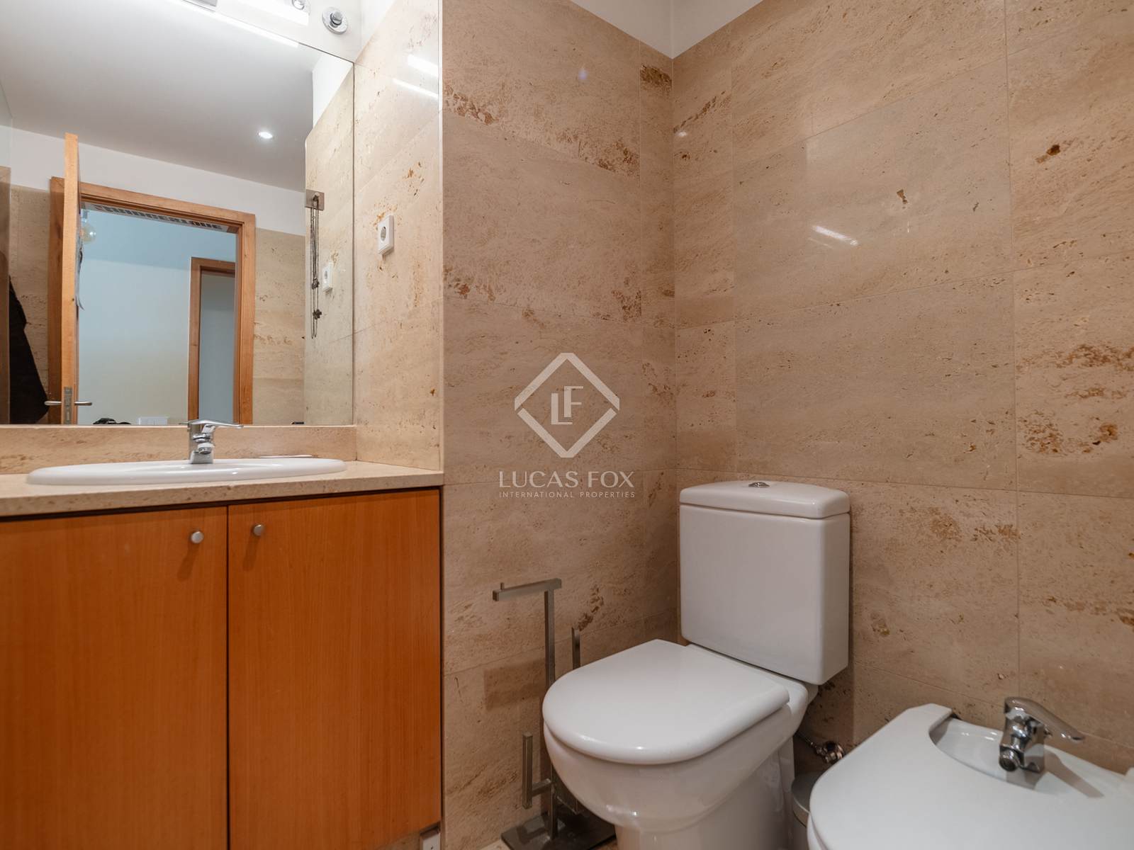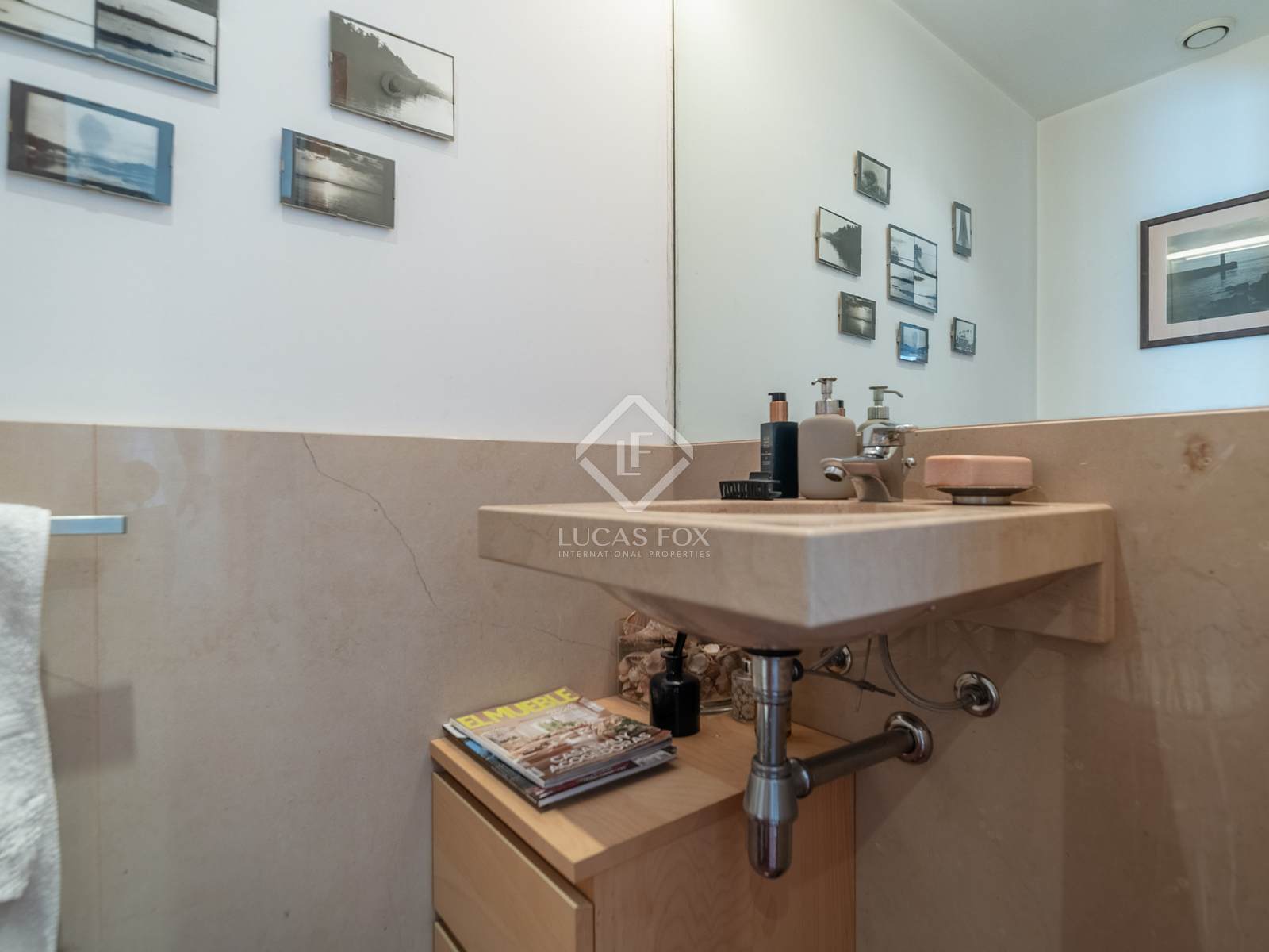 The apartment is spread over two generously sized floors and features three suites, one with a walk-in closet. The living room opens onto the balcony, and the kitchen and laundry room are fully equipped.