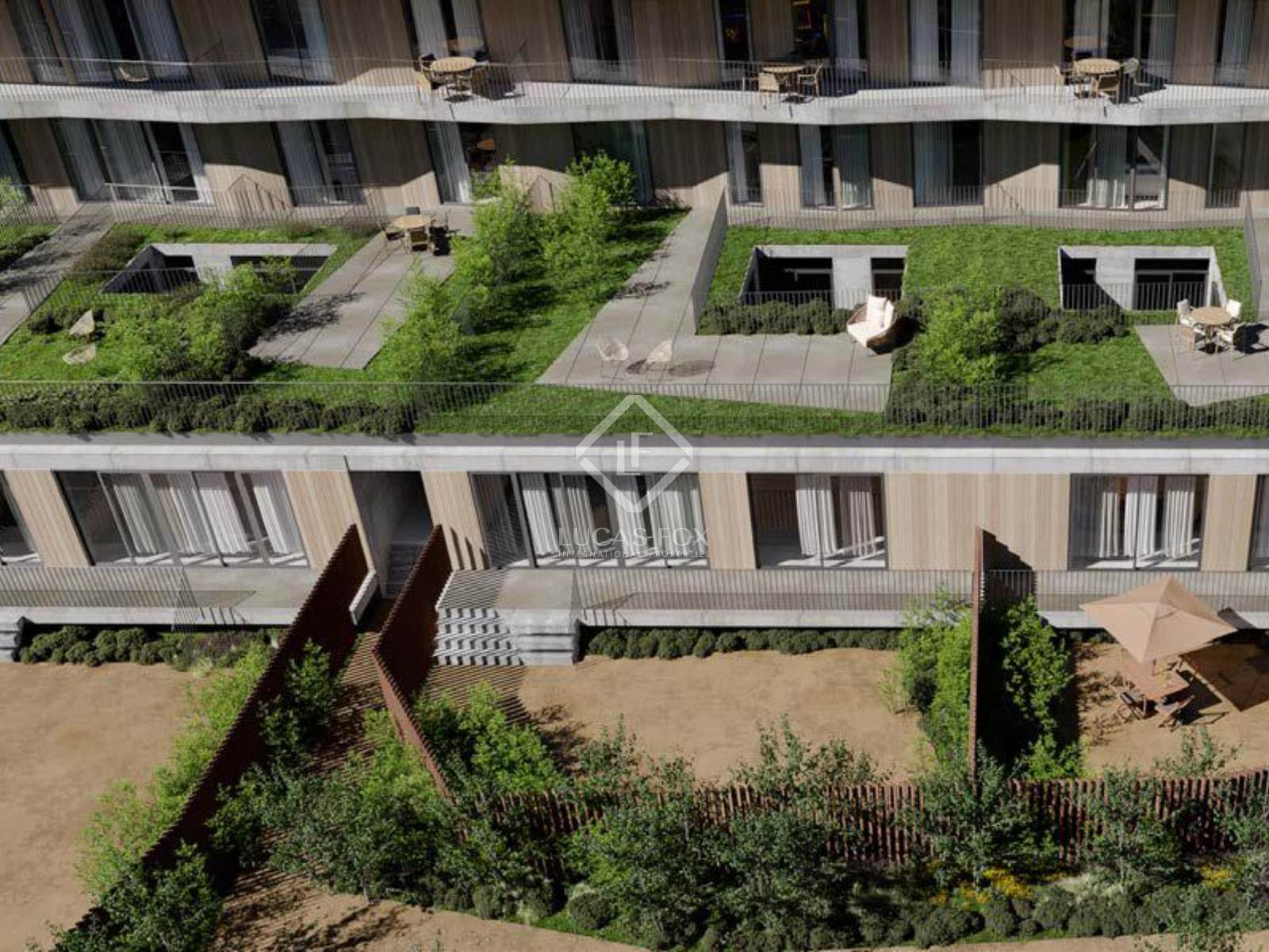 Avant-garde architecture and innovation combine with tradition and comfort in a space where the solidity of the stone and wood facade coexists harmoniously with the delicate gardens. The apartments combine open, bright spaces with large windows, interior patios, gardens, and private terraces, simply allowing time to pass by more slowly.