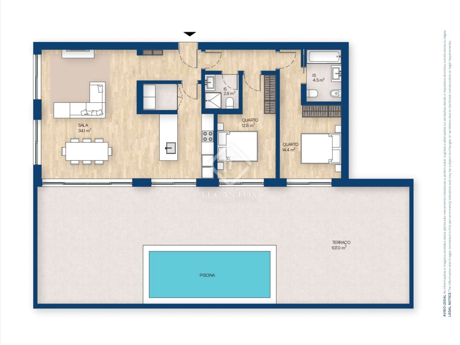 2 bedroom apartment with 107 m2 of gross private area, 114 m2 private terrace and private pool, in Canidelo, Vila Nova de Gaia.