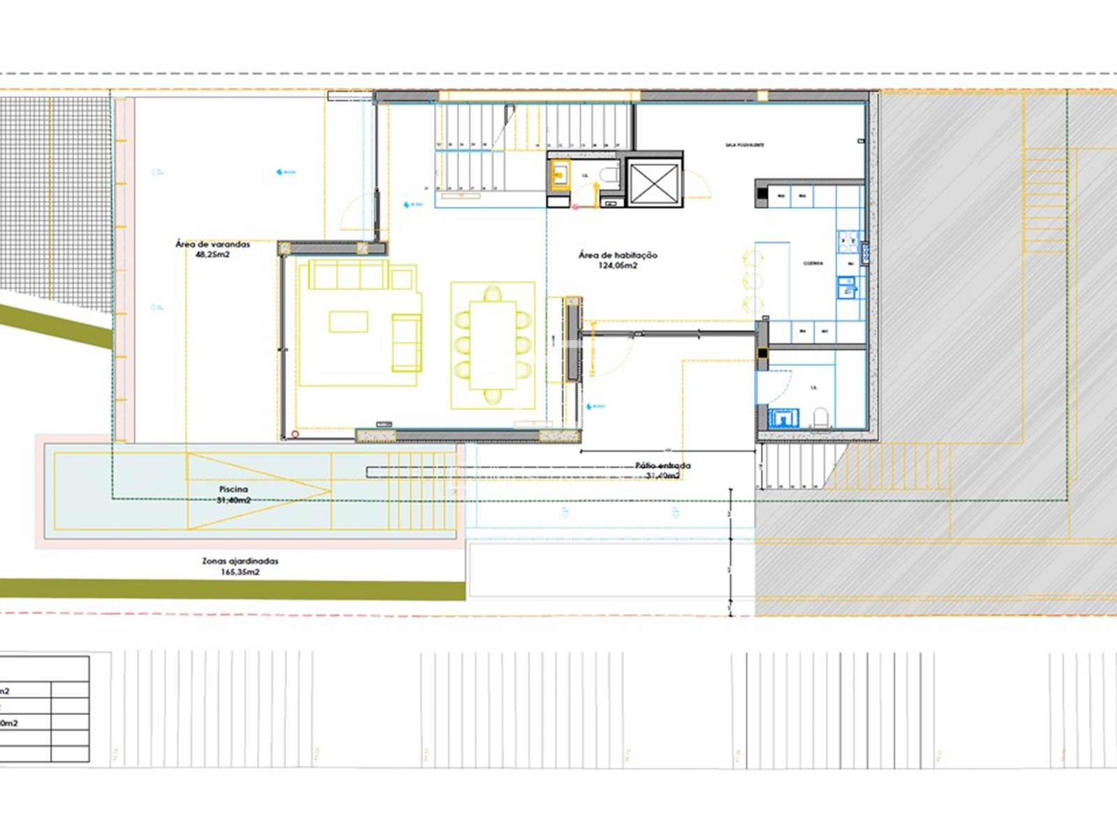 This exclusive single-family house of type T3+2 (multipurpose space and support room) is developed on three levels and integrates perfectly into the landscape and morphology of the land, respecting its natural terraces and the surrounding landscape.