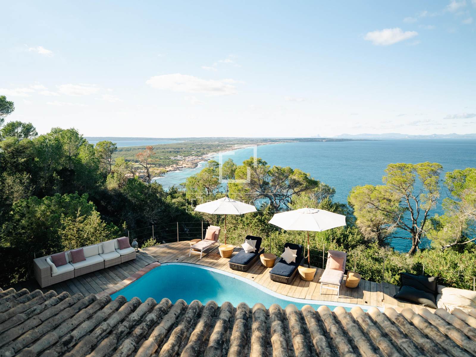 The main floor porch not only offers an outdoor space to enjoy the sea breeze and warm Mediterranean sun, but also leads to a spectacular pool that blends harmoniously with the surrounding landscape. From here, you can enjoy stunning panoramic views of the picturesque island of Formentera, thus creating an idyllic environment to disconnect and reconnect with nature.