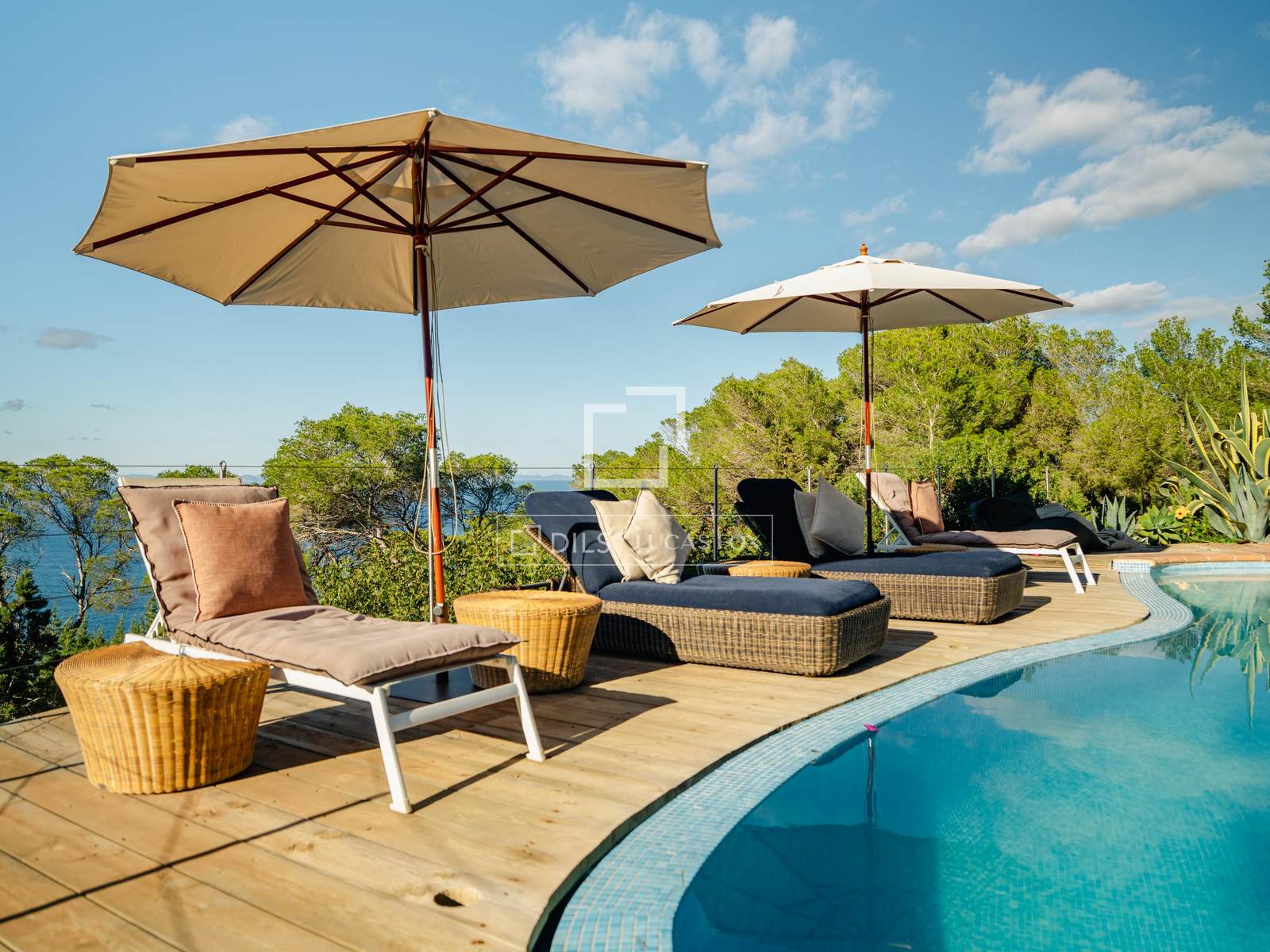 This majestic residence, with its capacity to comfortably accommodate up to 14 people, has been meticulously designed and decorated to offer a truly unforgettable experience. Every corner of this house radiates authentic rustic charm, where soft, warm shades harmoniously intertwine with natural elements such as wood and natural fibres, thus creating a cosy and relaxing atmosphere that invites you to immerse yourself in the serenity of the island.