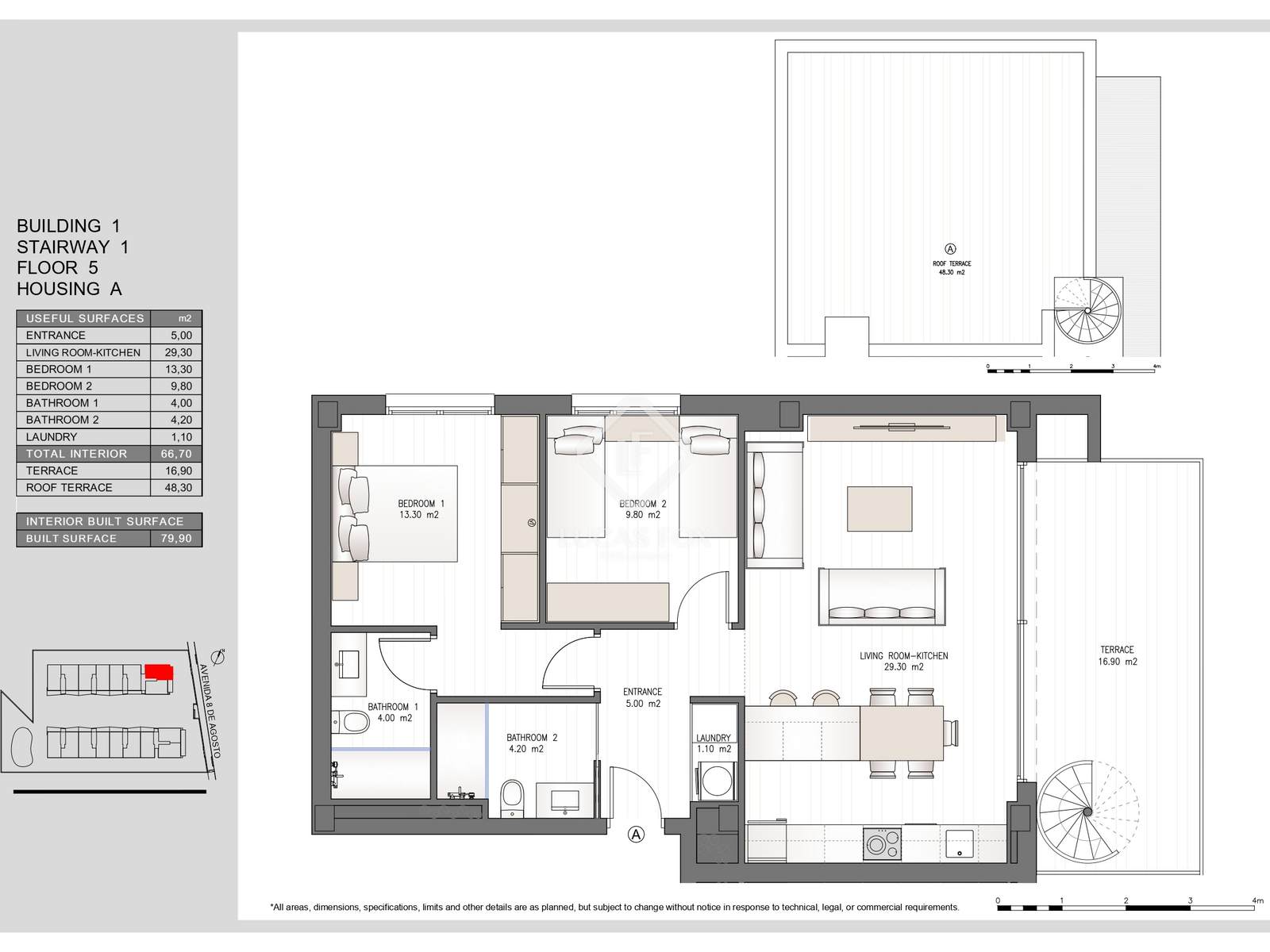 This property has been conceived with meticulous attention to detail, boasting a contemporary aesthetic and exceptional functional design. Located on the top floor of the first building, this penthouse offers 98 m² of living space and features a stunning 49 m² private rooftop terrace, perfect for enjoying outdoor moments with exceptional views.