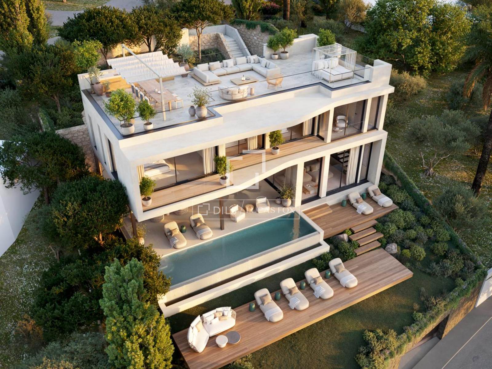 The villa consist of a total of 5 bedrooms with bathrooms, modern and spacious living areas, dining room and kitchen, gym of 32 m² and cinema room, a garage for 4 vehicles, an interior patio, large outdoor terraces with barbecue and an impressive chill-out terrace with specially designed ambient lighting and a fireplace from which the views are even more spectacular.