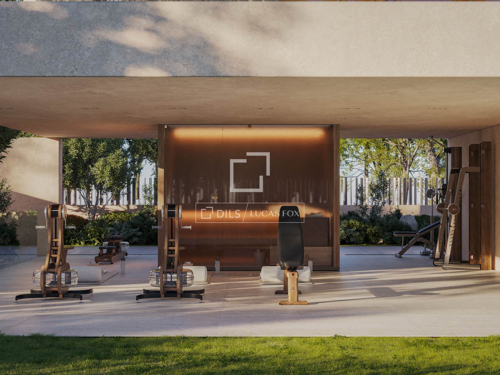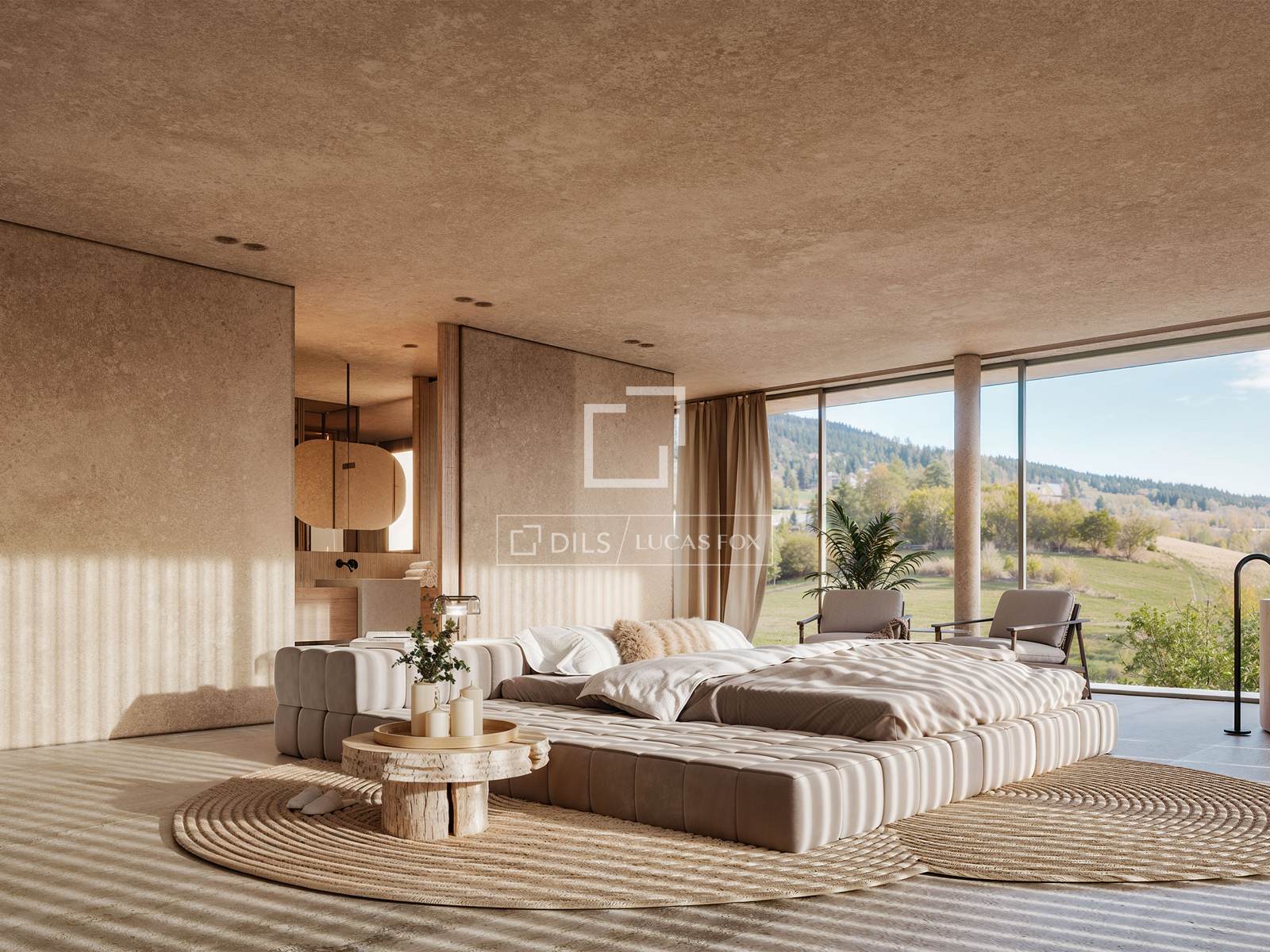 The exterior is designed for pure relaxation and entertaining, featuring a 107 m² swimming pool, expansive sun terraces, and beautifully landscaped gardens that merge seamlessly with the natural surroundings.