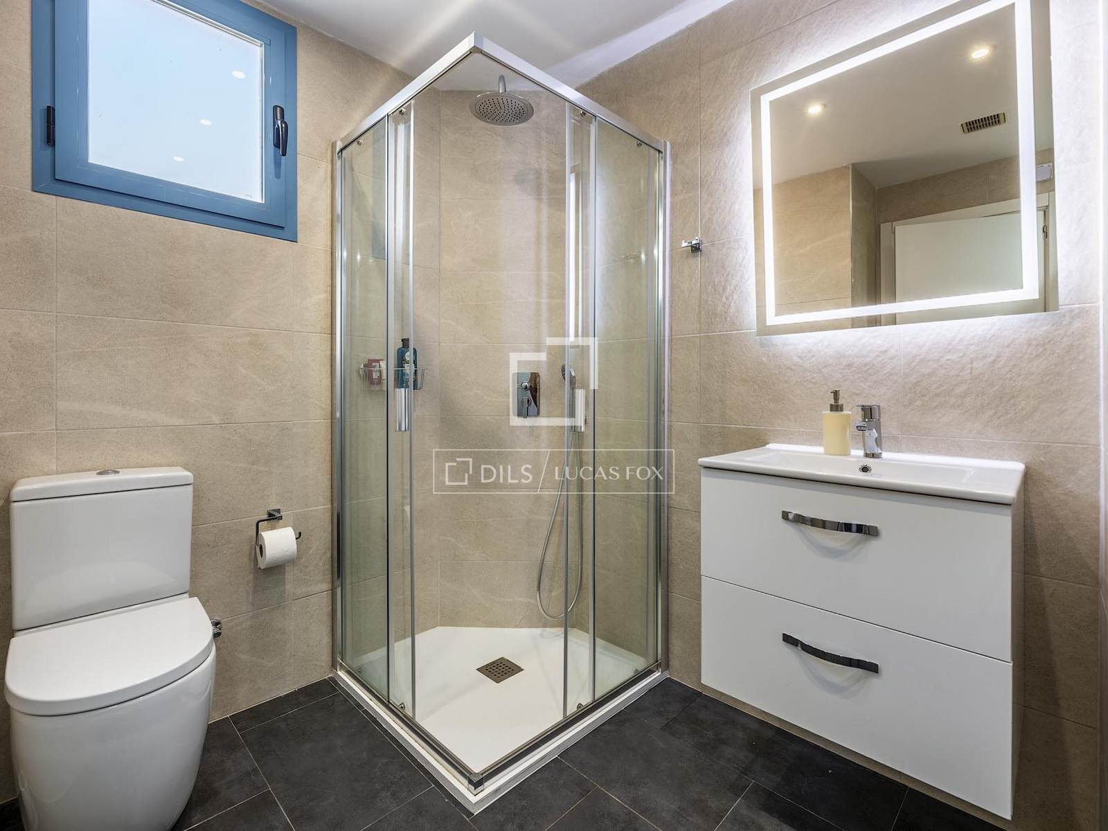 The property offers a well-balanced layout with three bedrooms, each with its private bathroom, providing a high level of comfort and privacy. The day area comprises a bright living-dining room and a fully equipped modern kitchen, designed as an open-plan space that connects directly to the terrace.