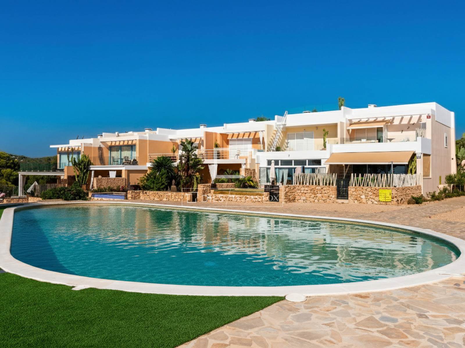 This sophisticated 135 m² townhouse is located in a prestigious gated community in Cala Tarida, one of the most peaceful and sought-after areas on Ibiza's west coast, known for its natural surroundings and spectacular sunsets.