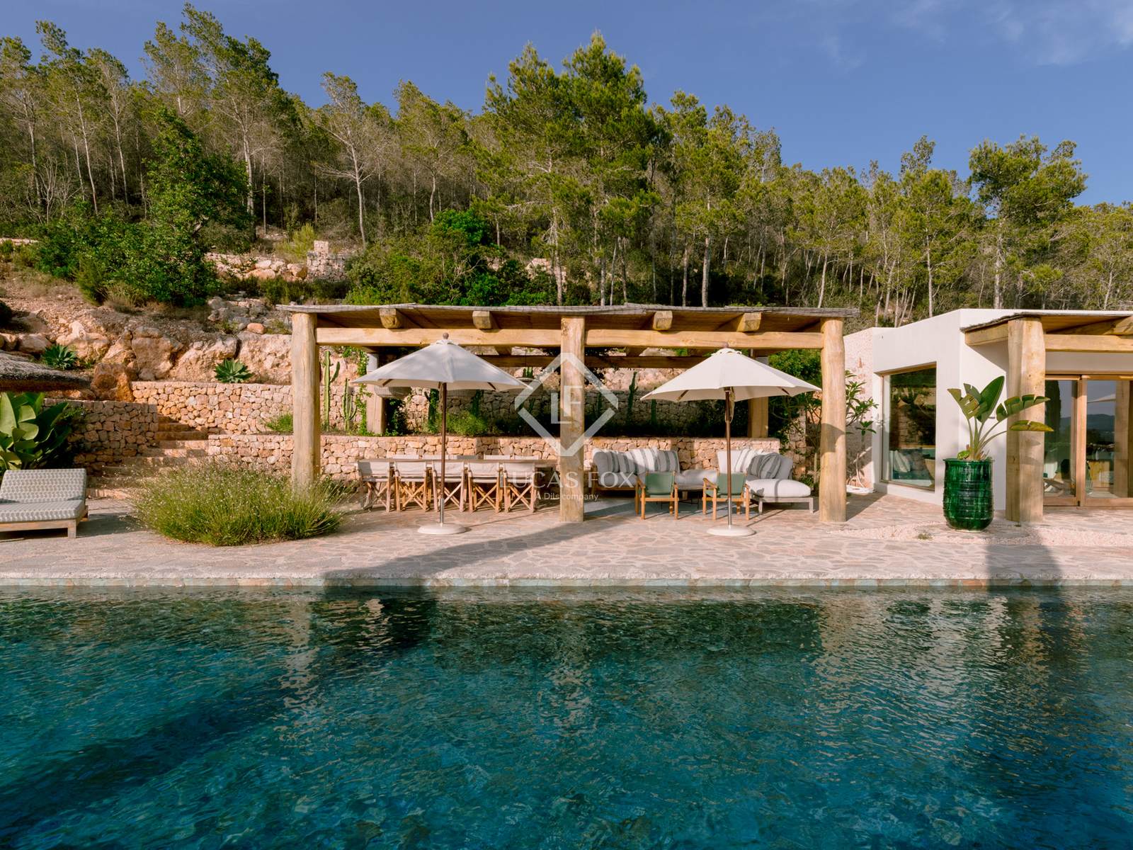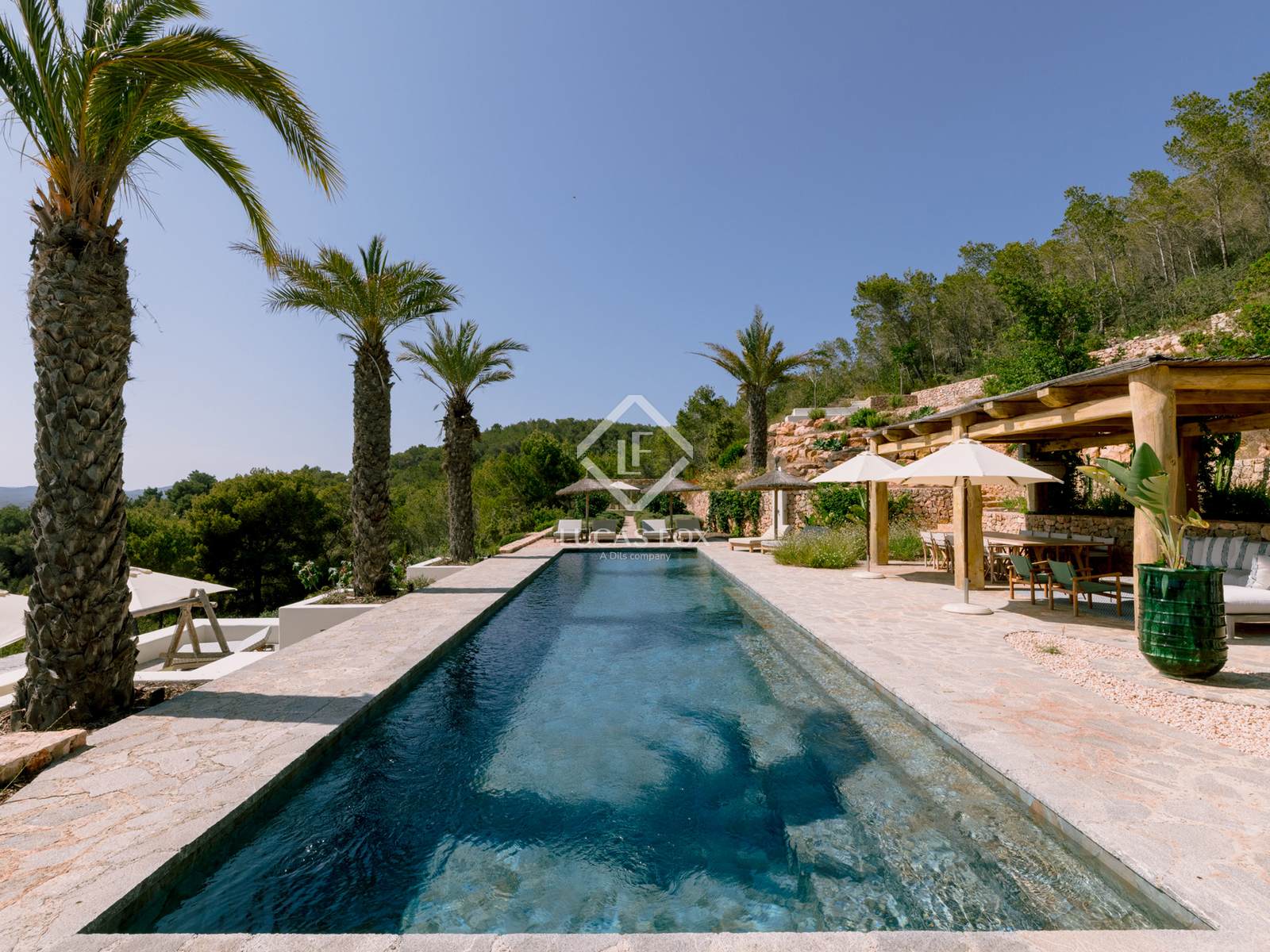 Nestled in the hills above Santa Eulalia in northeast Ibiza, the estate enjoys a tranquil elevated position with stunning panoramic views of both the sea and rolling countryside. The setting offers privacy and calm, while remaining within easy reach of local amenities and coastal attractions.