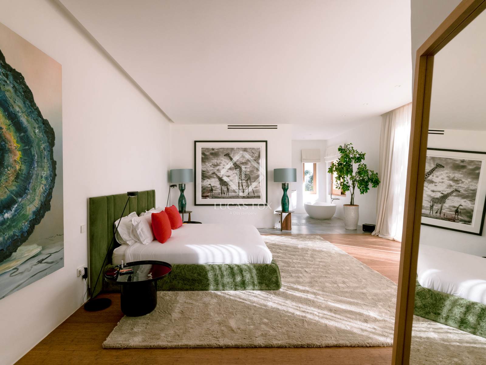 This expansive estate, situated in the hills above Santa Eulalia, instantly instils a sense of calm when passing through its gates. The property combines timeless and contemporary aesthetics, clean lines, geometric shapes, and a minimalist sensibility, that harmonize with the natural Ibiza landscape.