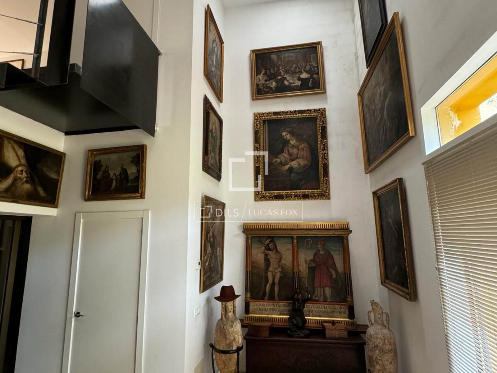 The interior layout is distributed across two floors. The ground floor features a generous living room with fireplace and access to a large enclosed terrace of approximately 70 m² that runs along the façade and acts as a natural thermal buffer, keeping the house cool in summer and warm during winter. A rustic-style kitchen with independent service entrance adds practicality, while two bedrooms with en-suite bathrooms complete this level, with the possibility to create two additional bedrooms if desired. Pre-installation for a lift has also been considered.