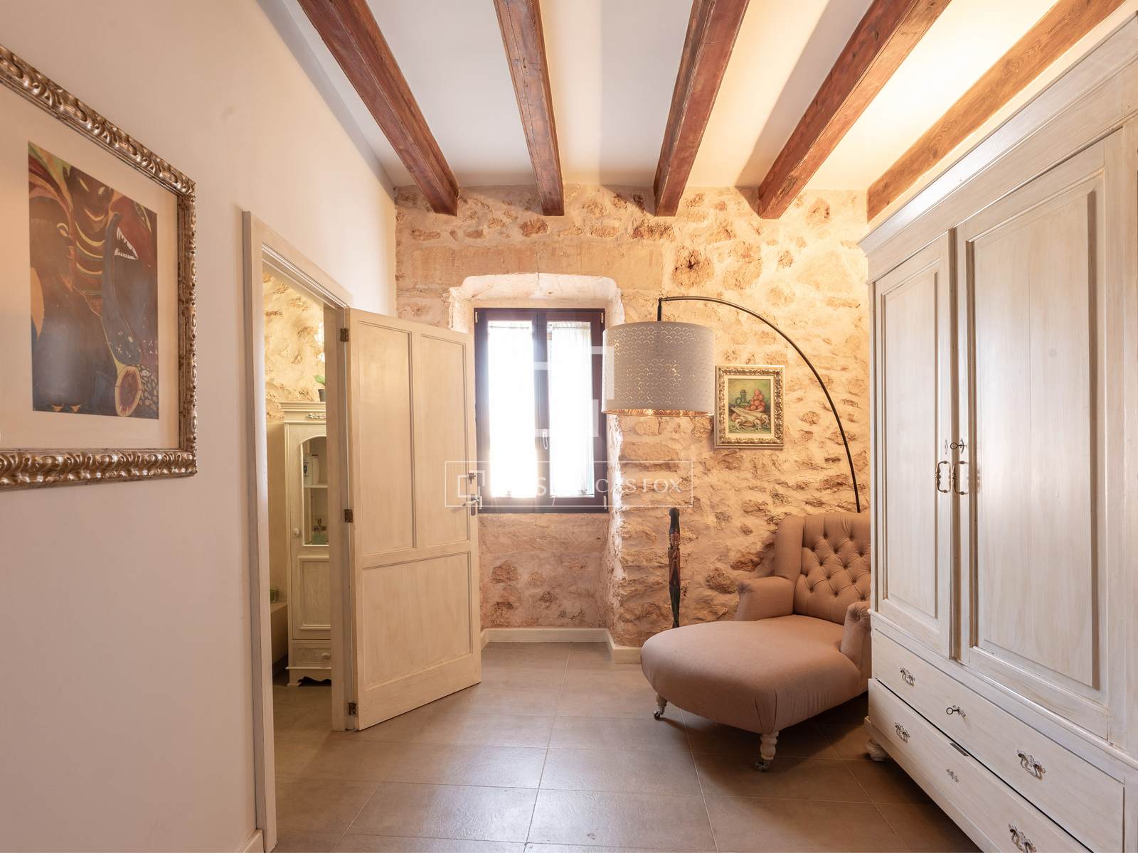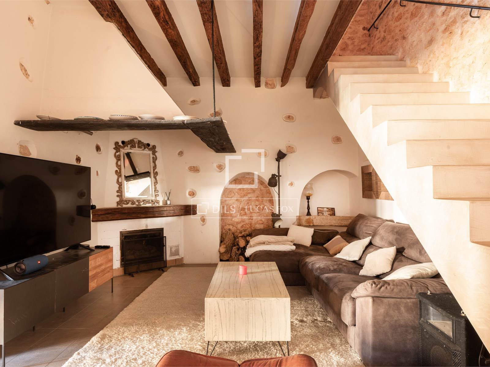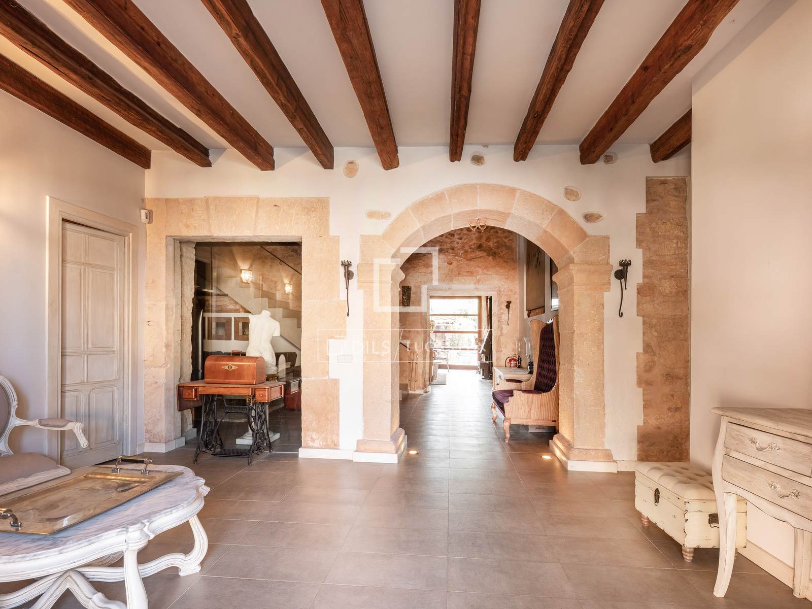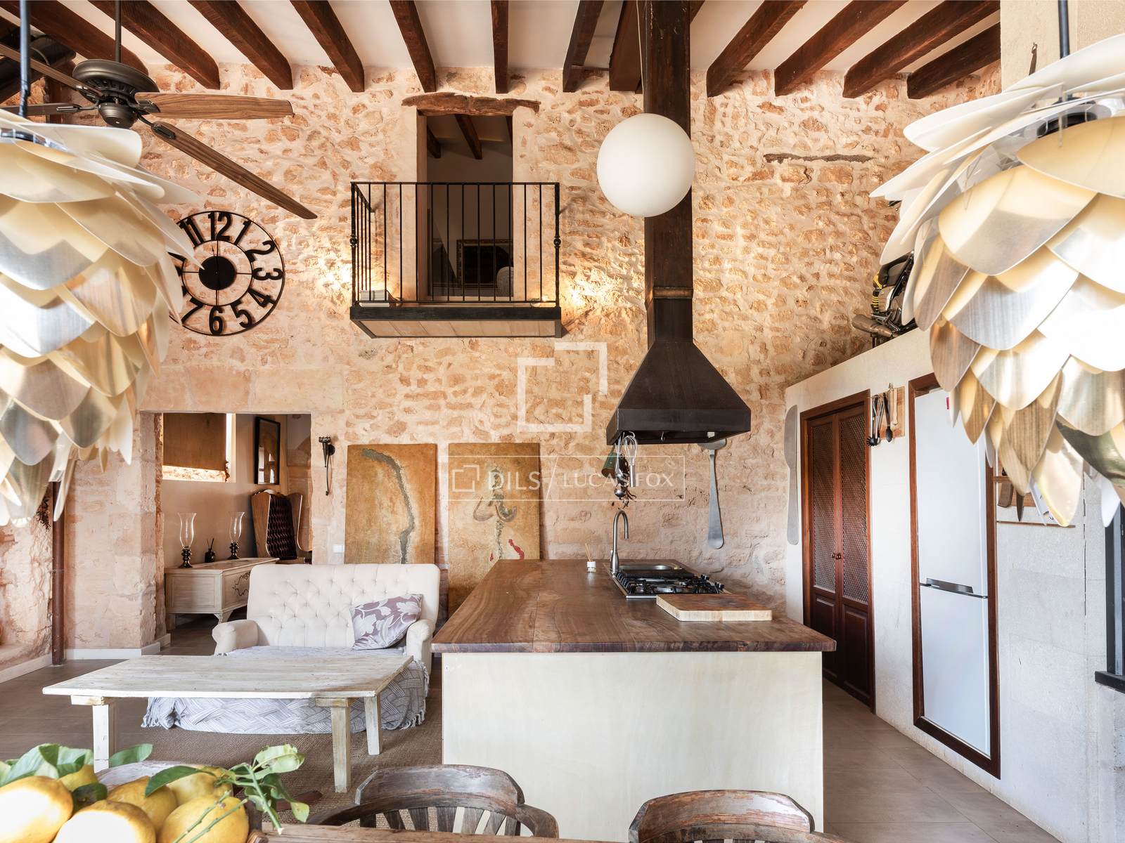 The property has been carefully refurbished, combining the character of traditional Mallorcan architecture with contemporary comfort. Original elements such as the stone arches are seamlessly integrated into the spacious and light-filled rooms. The layout is organized around a generous living-dining room with an open-plan kitchen and direct access to the garden, as well as four bedrooms and three bathrooms, one of which is en suite.