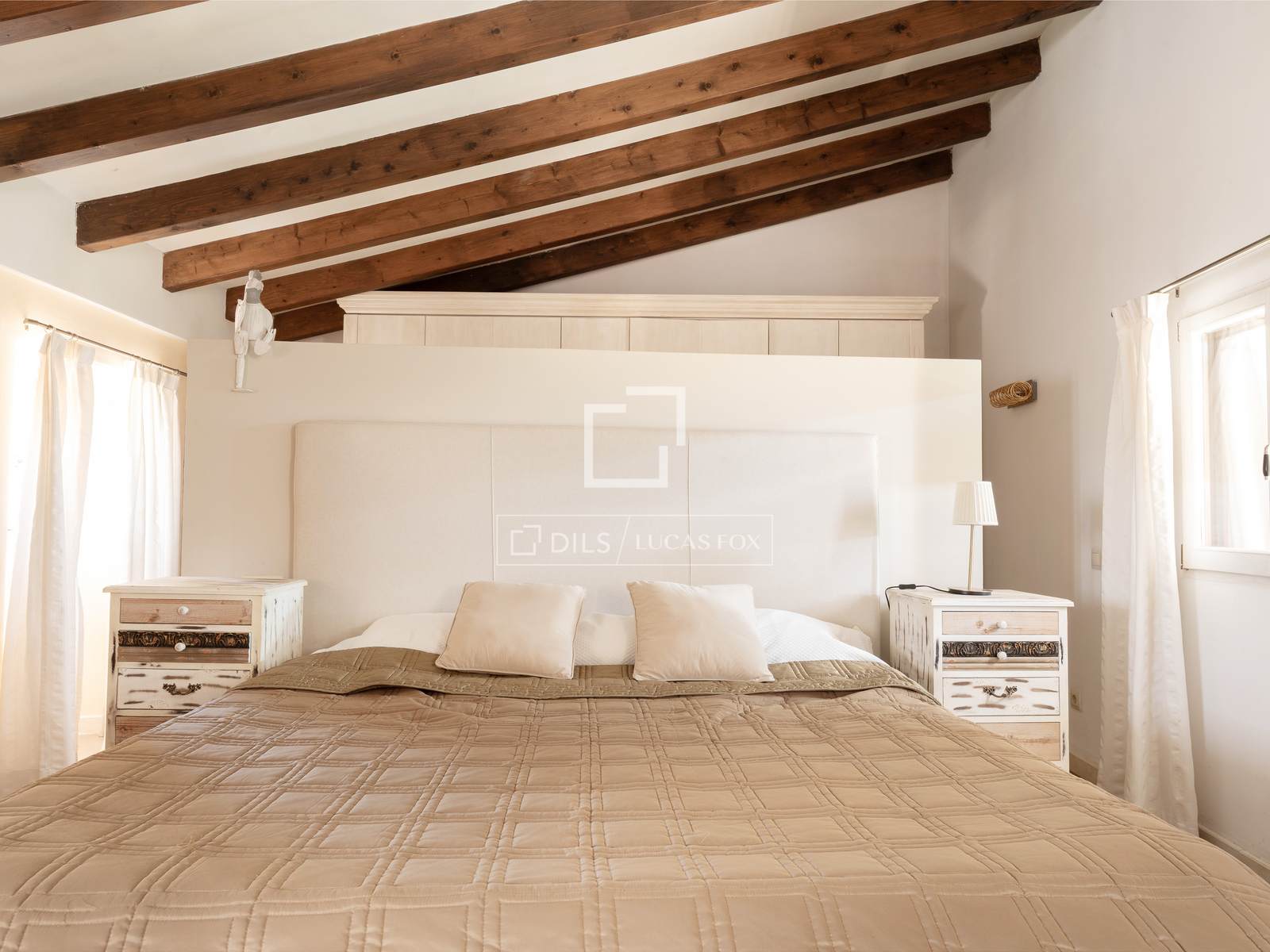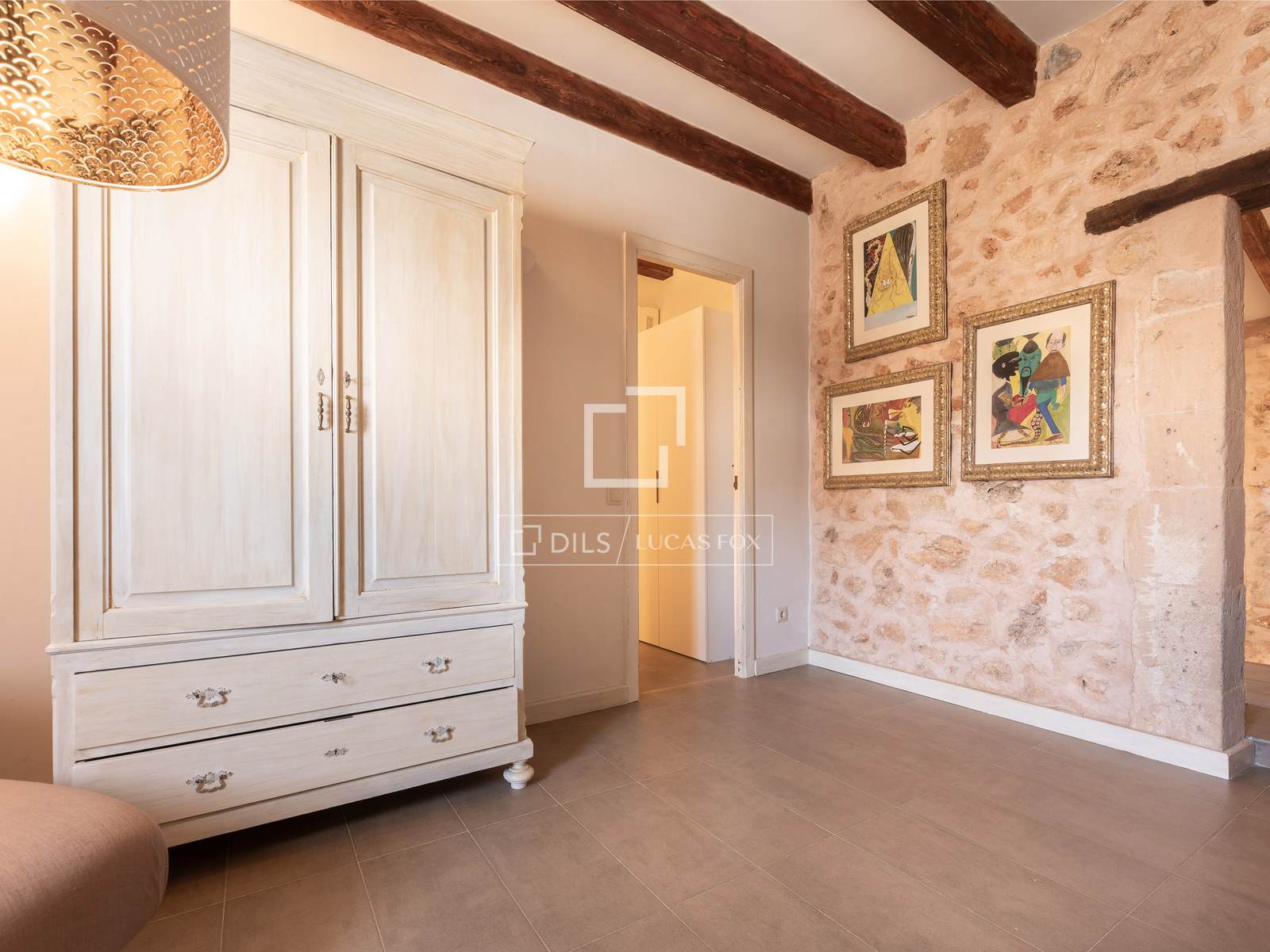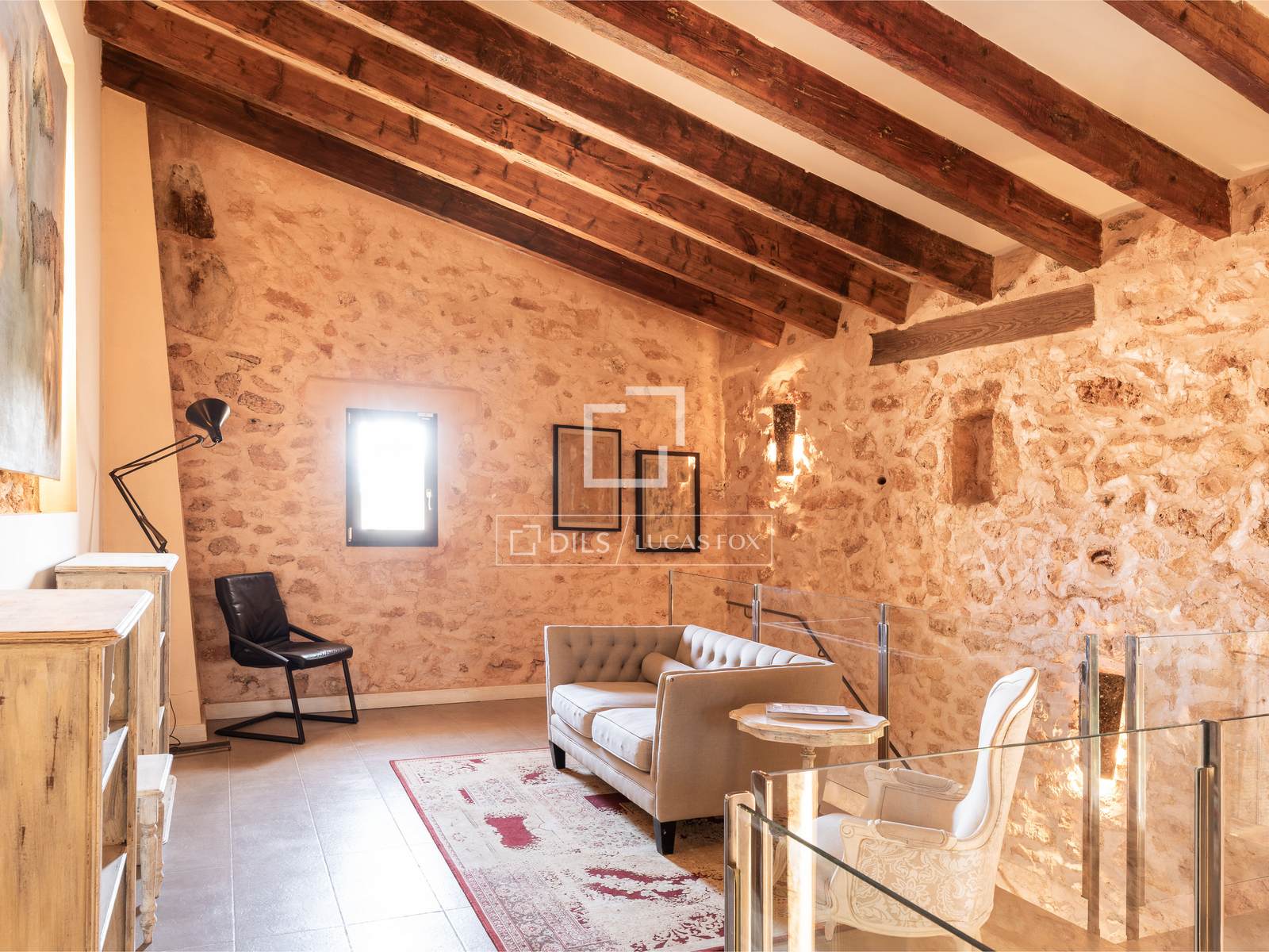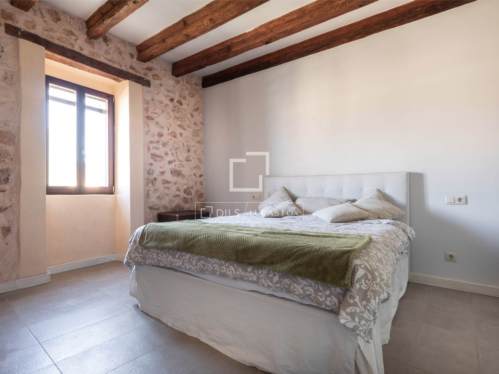 The property has been carefully refurbished, combining the character of traditional Mallorcan architecture with contemporary comfort. Original elements such as the stone arches are seamlessly integrated into the spacious and light-filled rooms. The layout is organized around a generous living-dining room with an open-plan kitchen and direct access to the garden, as well as four bedrooms and three bathrooms, one of which is en suite.