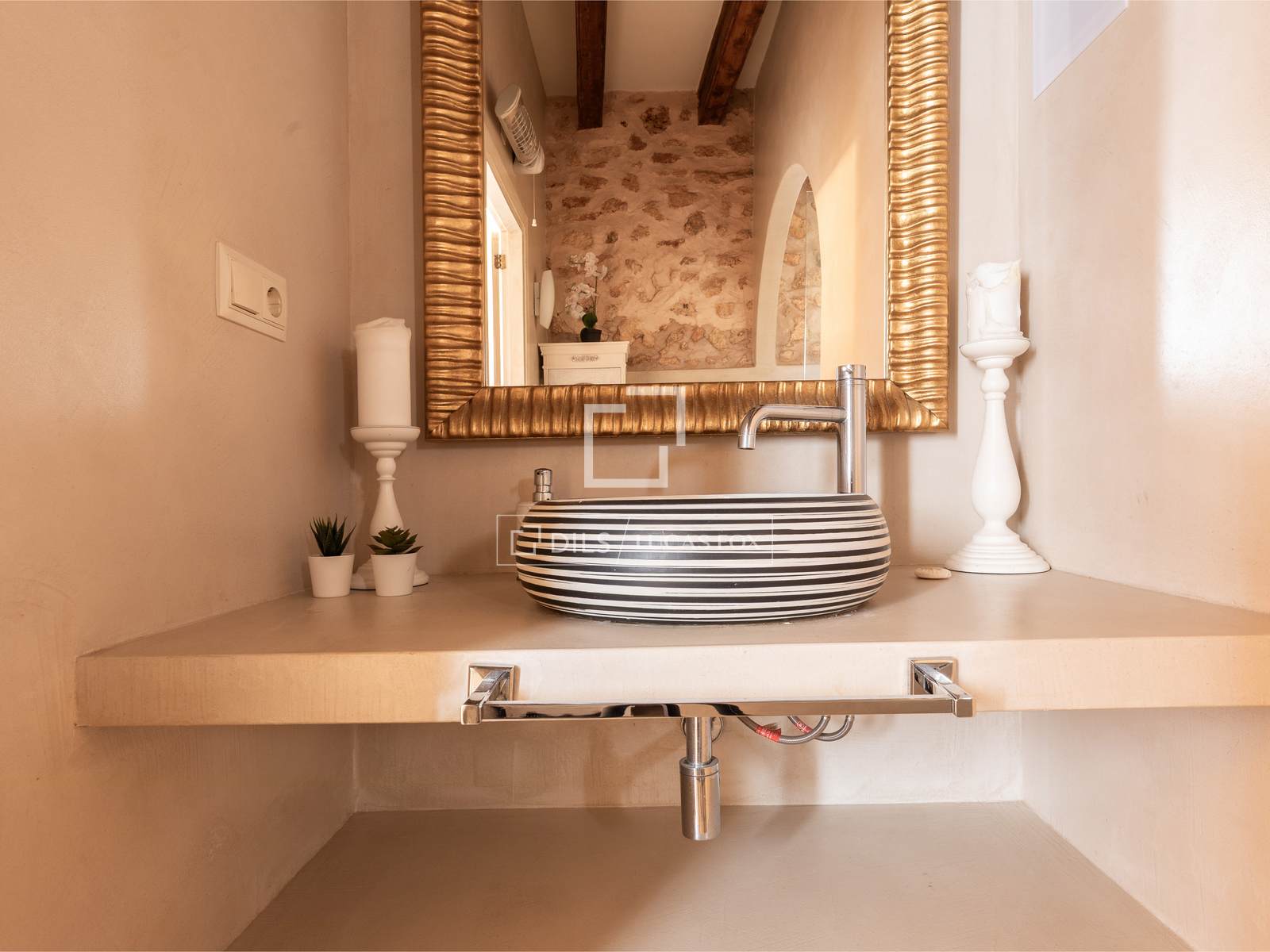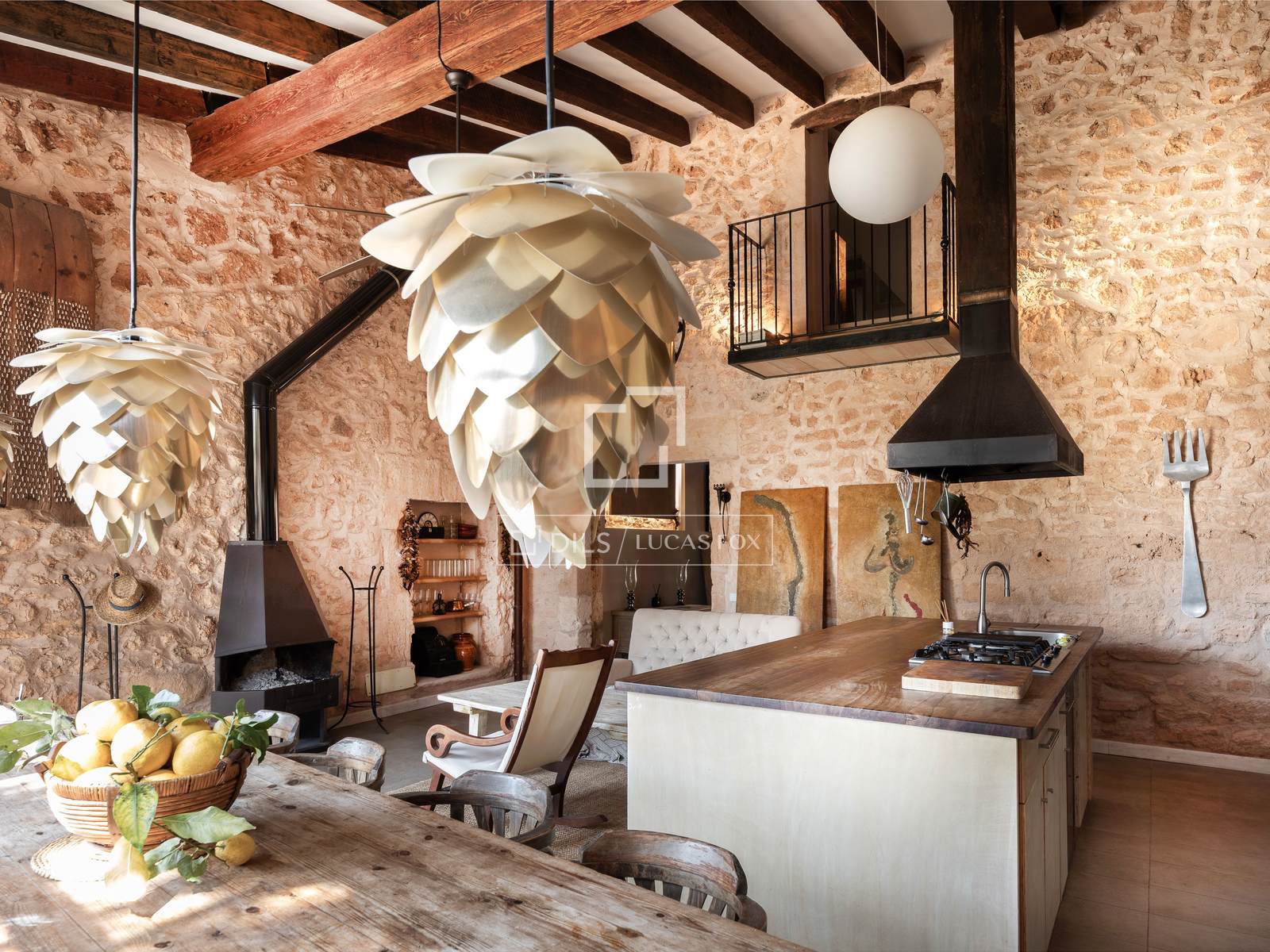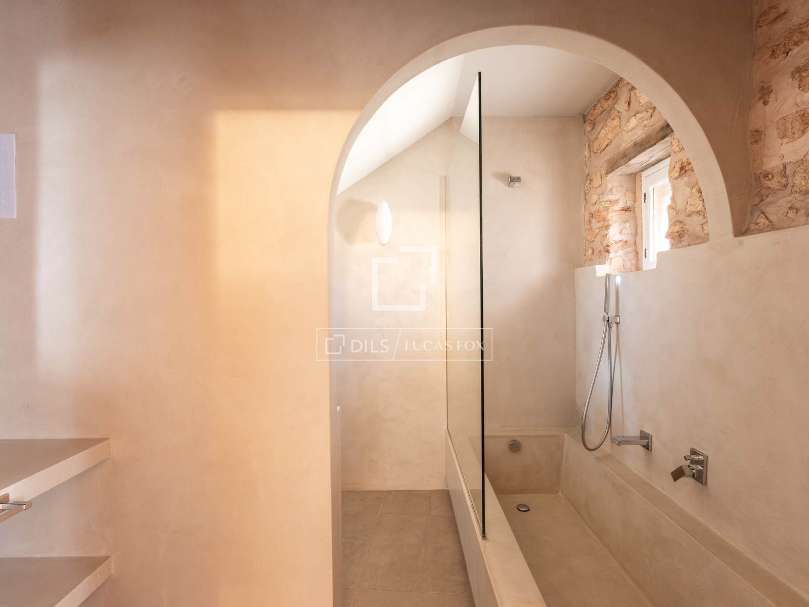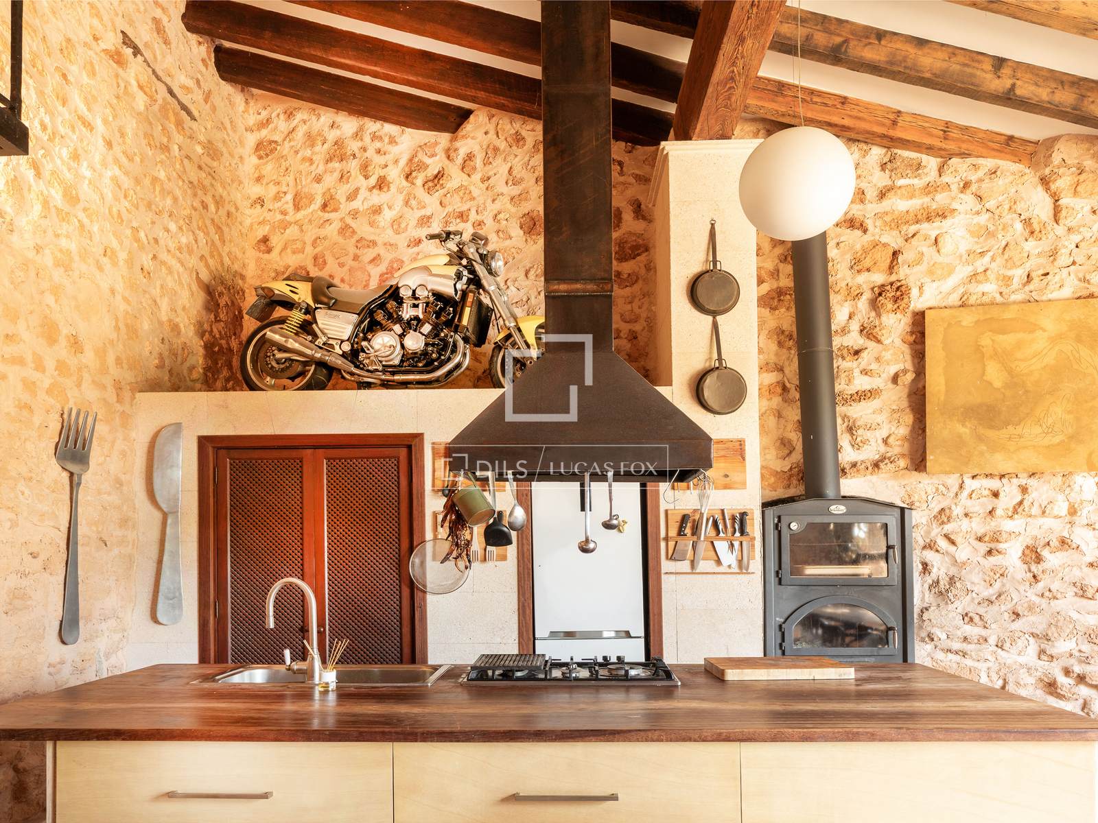 The property has been carefully refurbished, combining the character of traditional Mallorcan architecture with contemporary comfort. Original elements such as the stone arches are seamlessly integrated into the spacious and light-filled rooms. The layout is organized around a generous living-dining room with an open-plan kitchen and direct access to the garden, as well as four bedrooms and three bathrooms, one of which is en suite.