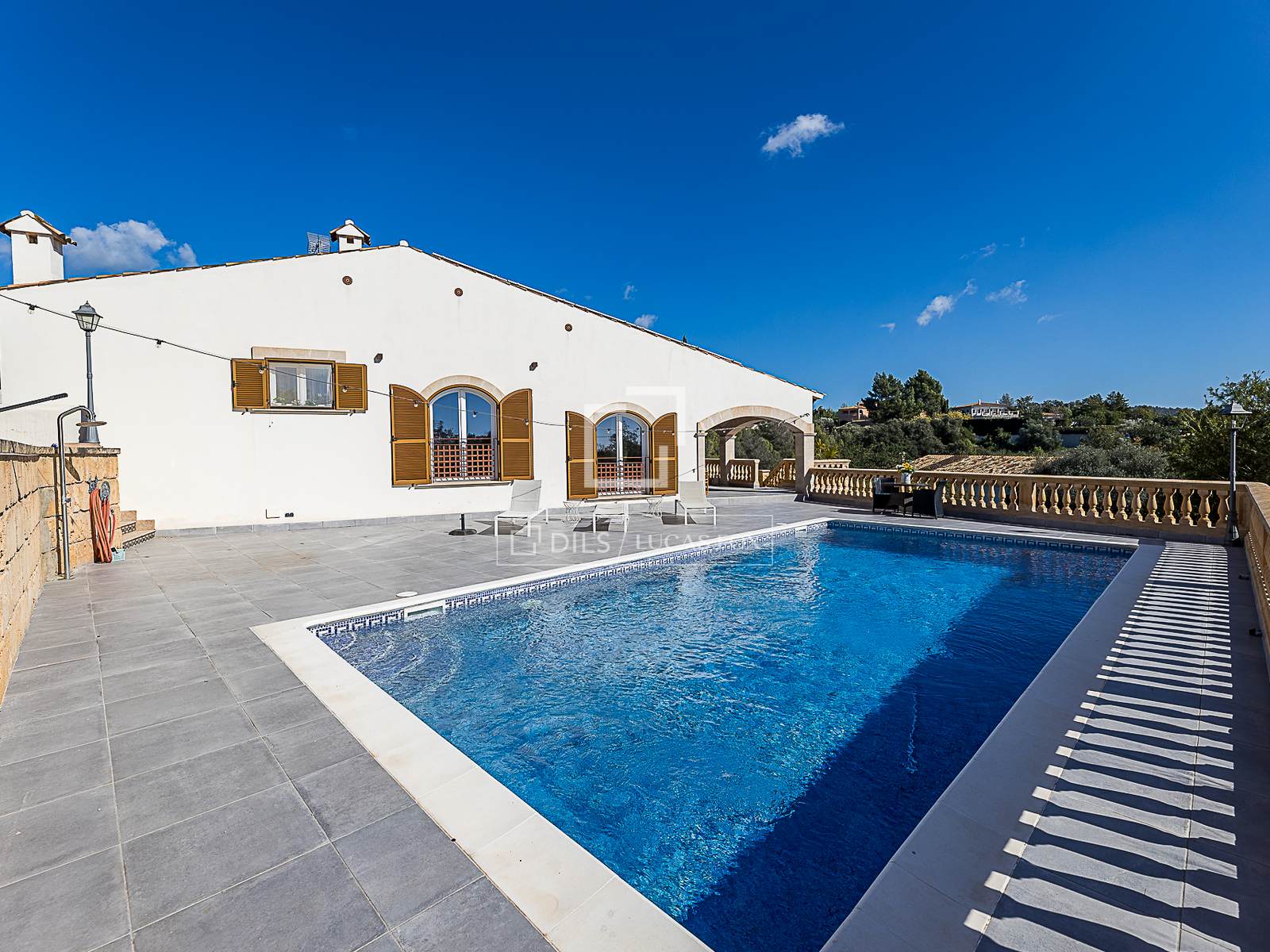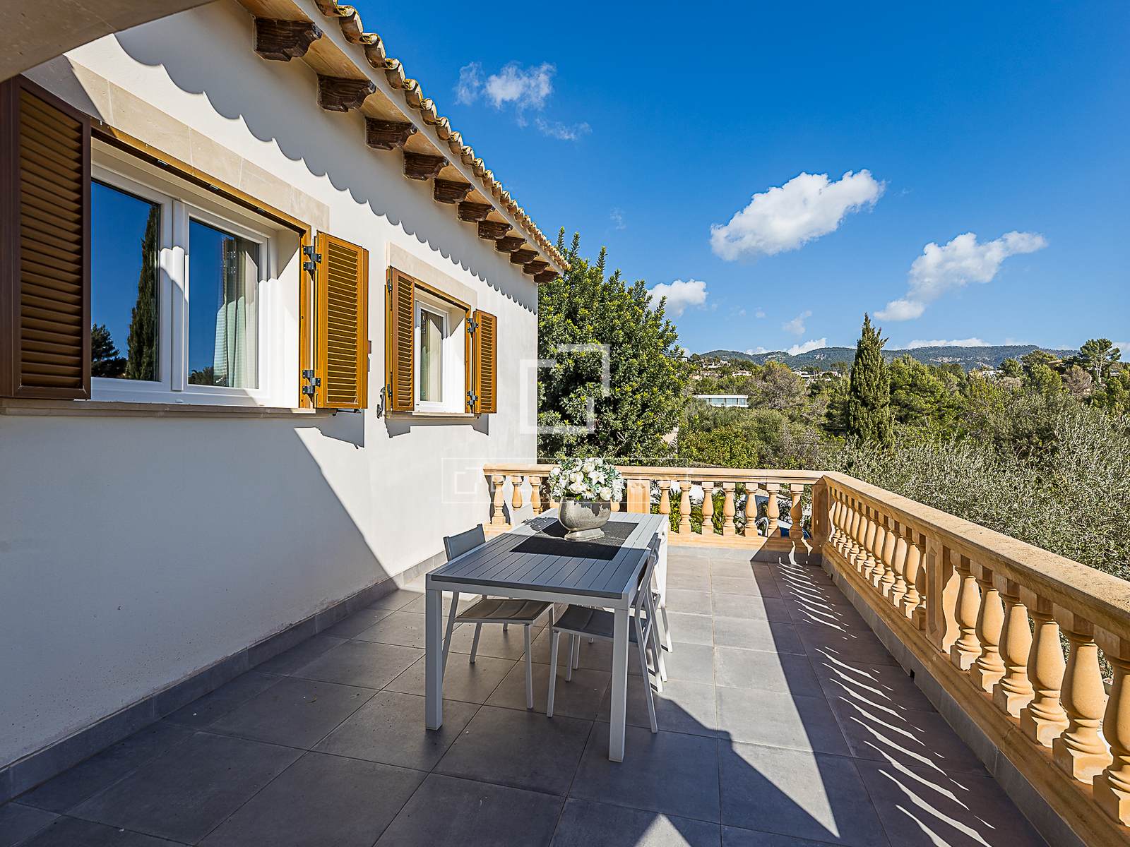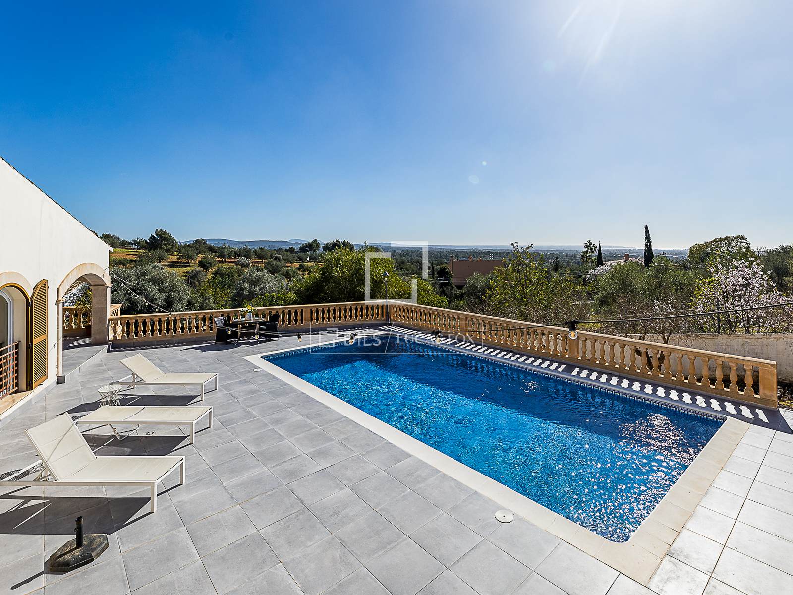 Exclusive detached villa in Sa Coma, Bunyola, with panoramic views towards the Bay of Palma and the Tramuntana mountains. Main residence on one level, guest apartment, swimming pool, solar panels and holiday rental license for 10 guests.