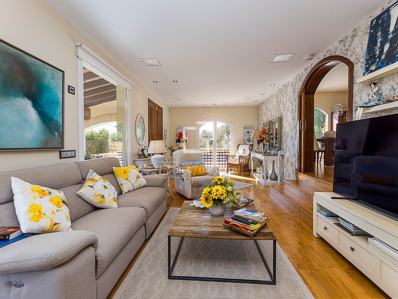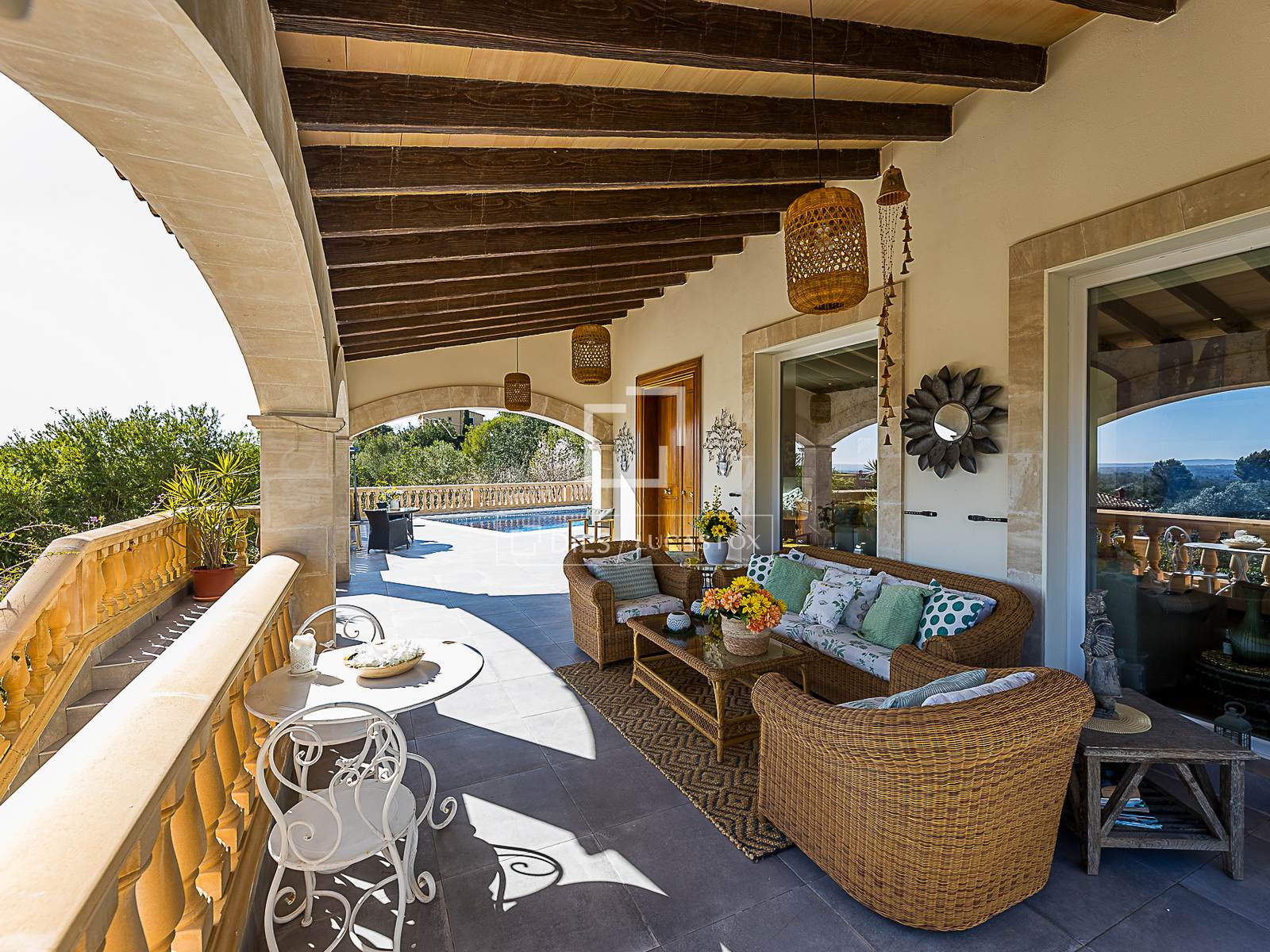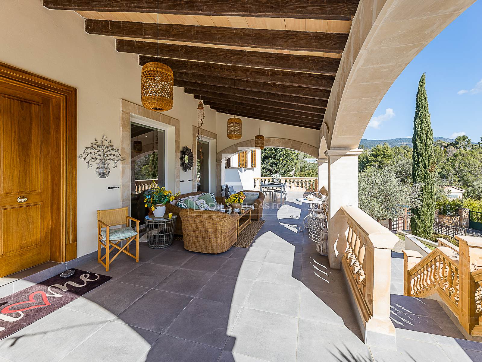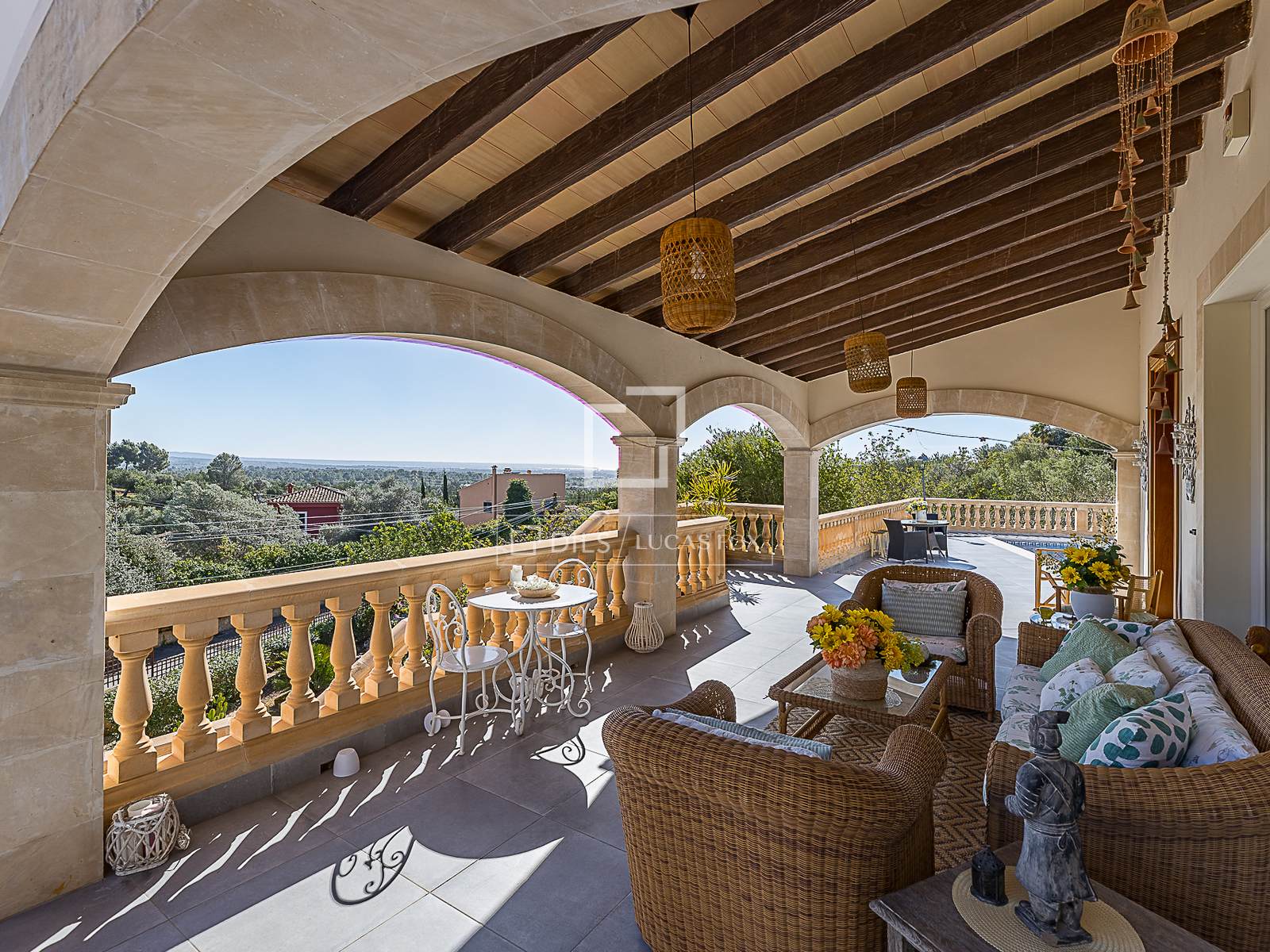 Exclusive detached villa in Sa Coma, Bunyola, with panoramic views towards the Bay of Palma and the Tramuntana mountains. Main residence on one level, guest apartment, swimming pool, solar panels and holiday rental license for 10 guests.