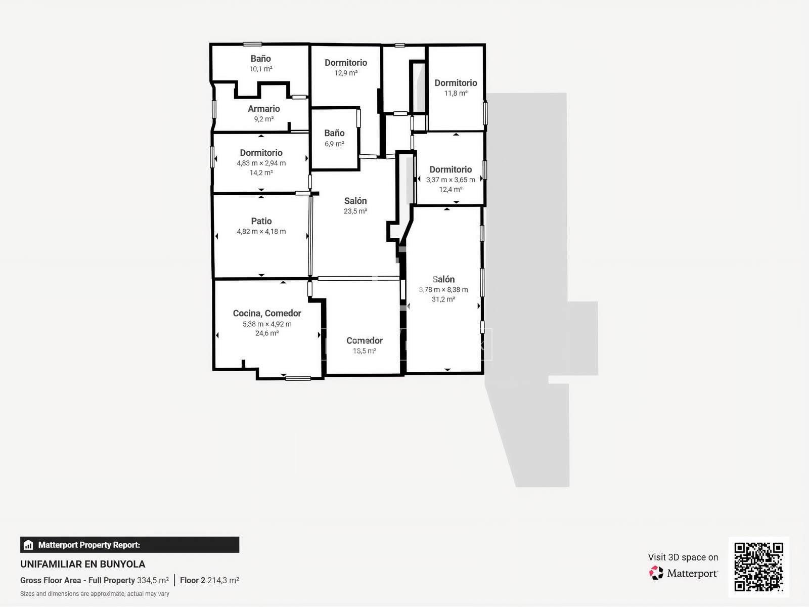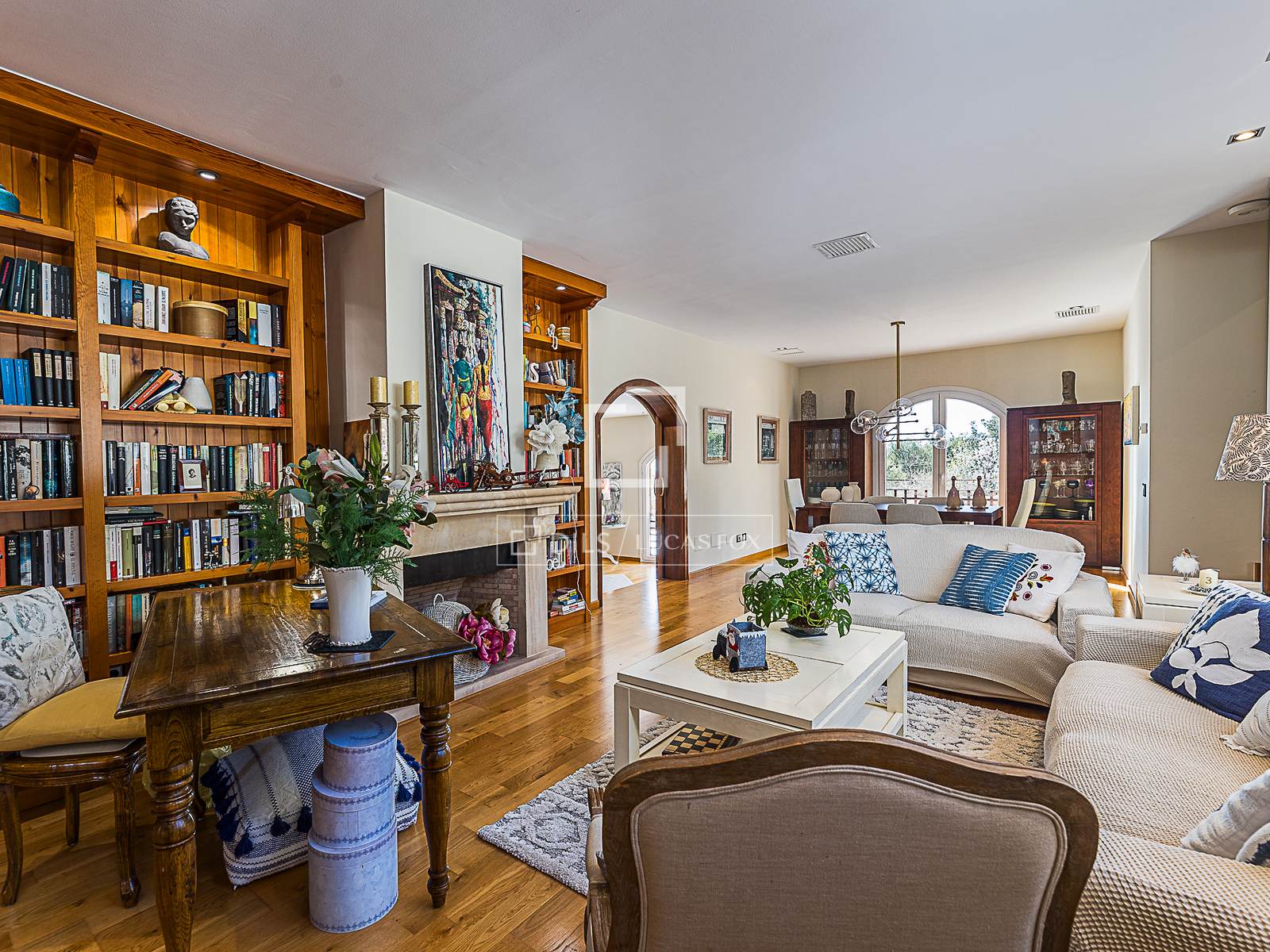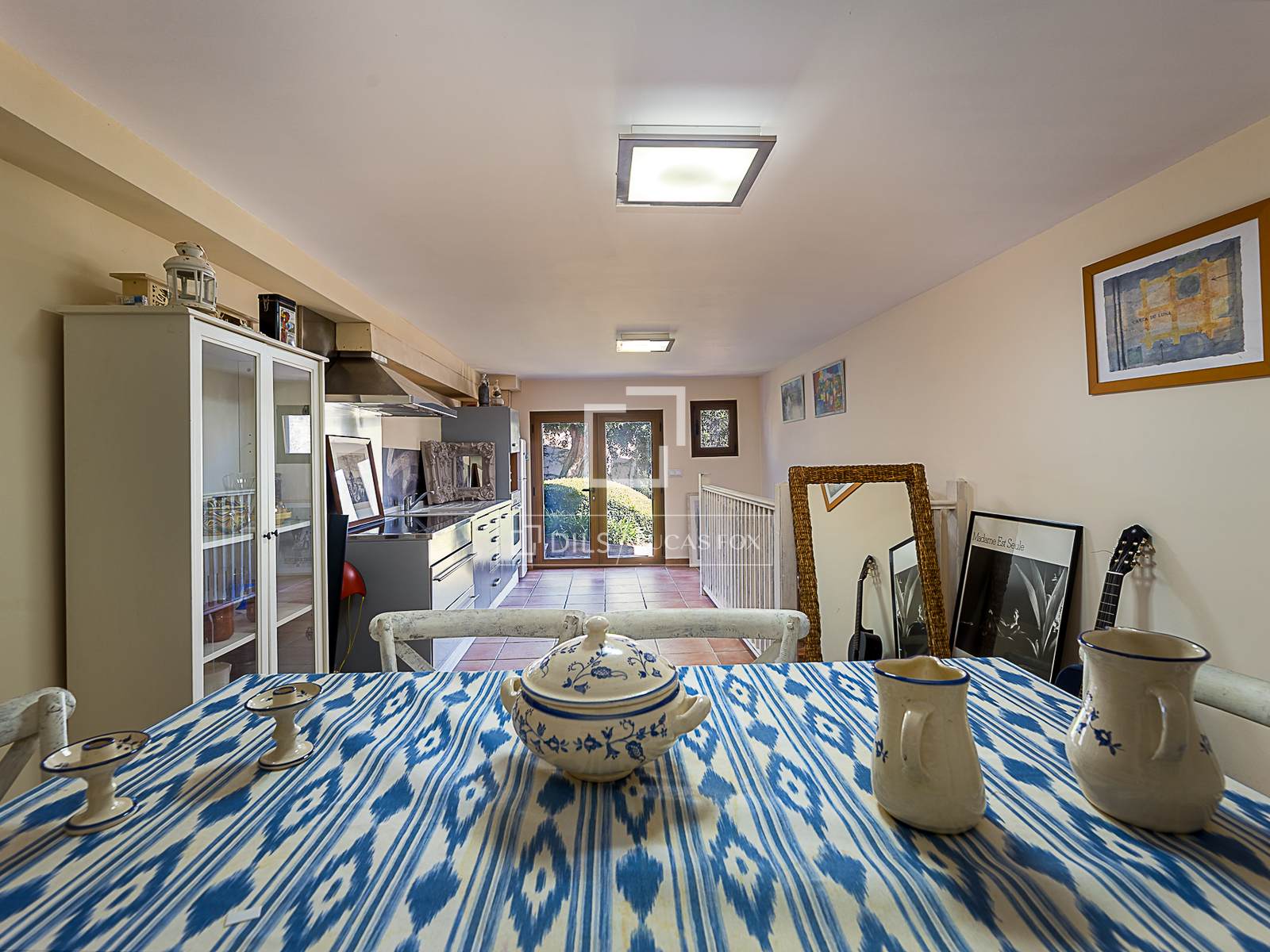 The main house is comfortably distributed on one level, offering bright and spacious living areas designed for both everyday living and entertaining. Two interconnected living rooms and a separate dining area create different atmospheres for relaxation and social gatherings, enhanced by large windows that allow abundant natural light throughout the home. The independent kitchen connects directly to a charming interior patio, providing a private outdoor space typical of Mediterranean living.