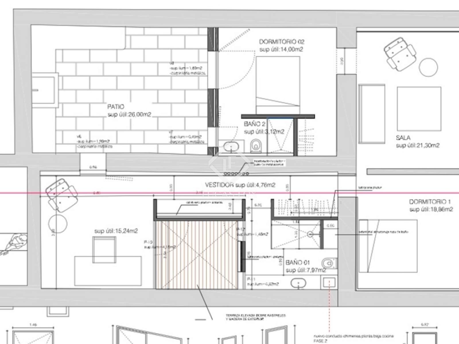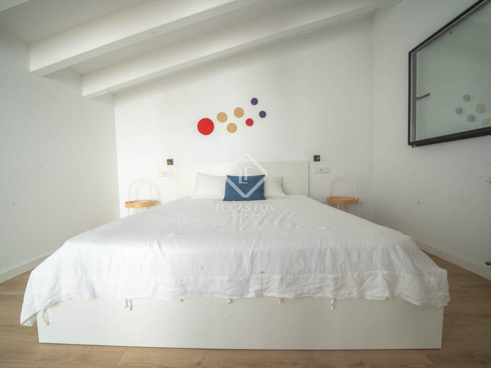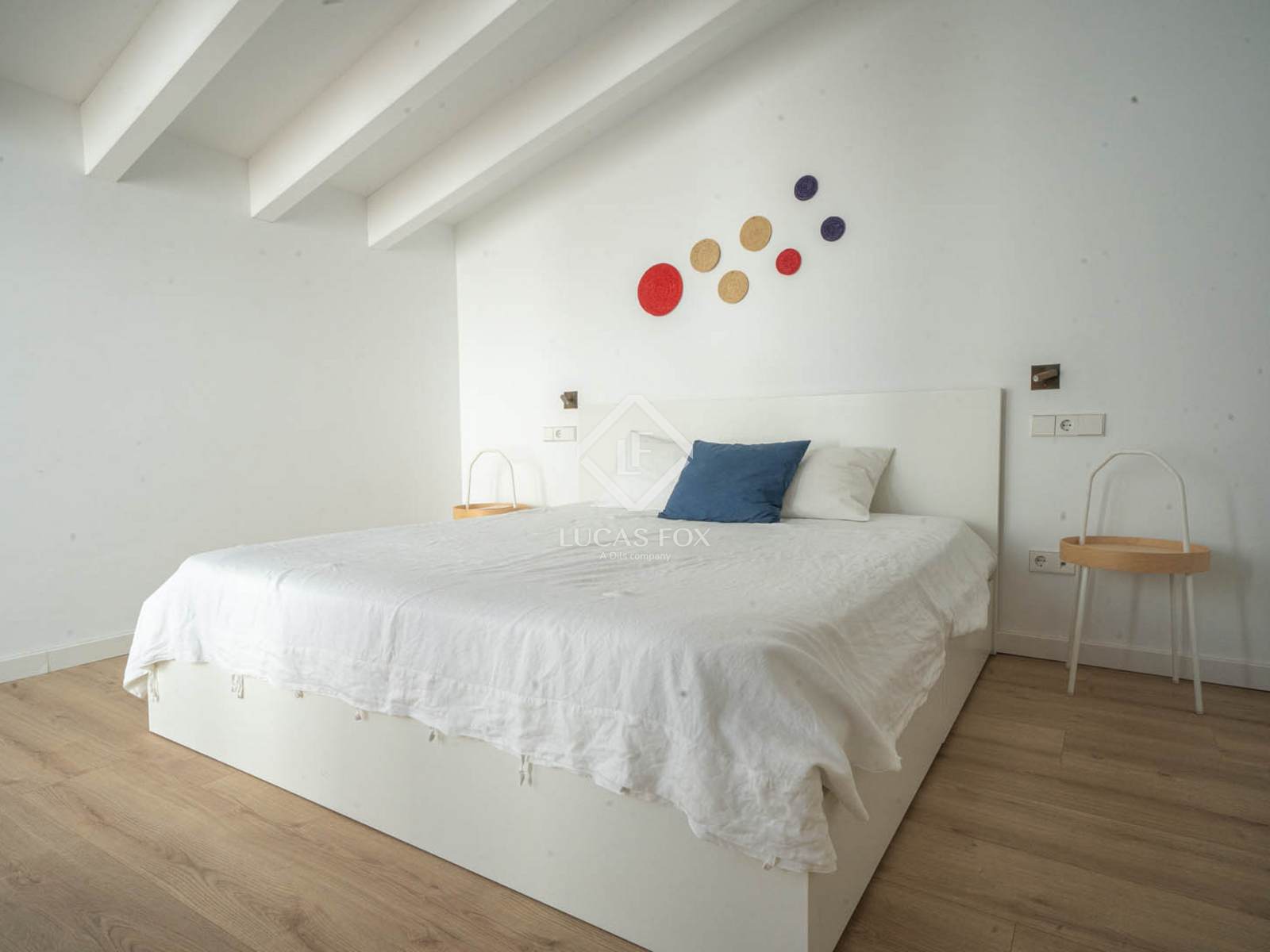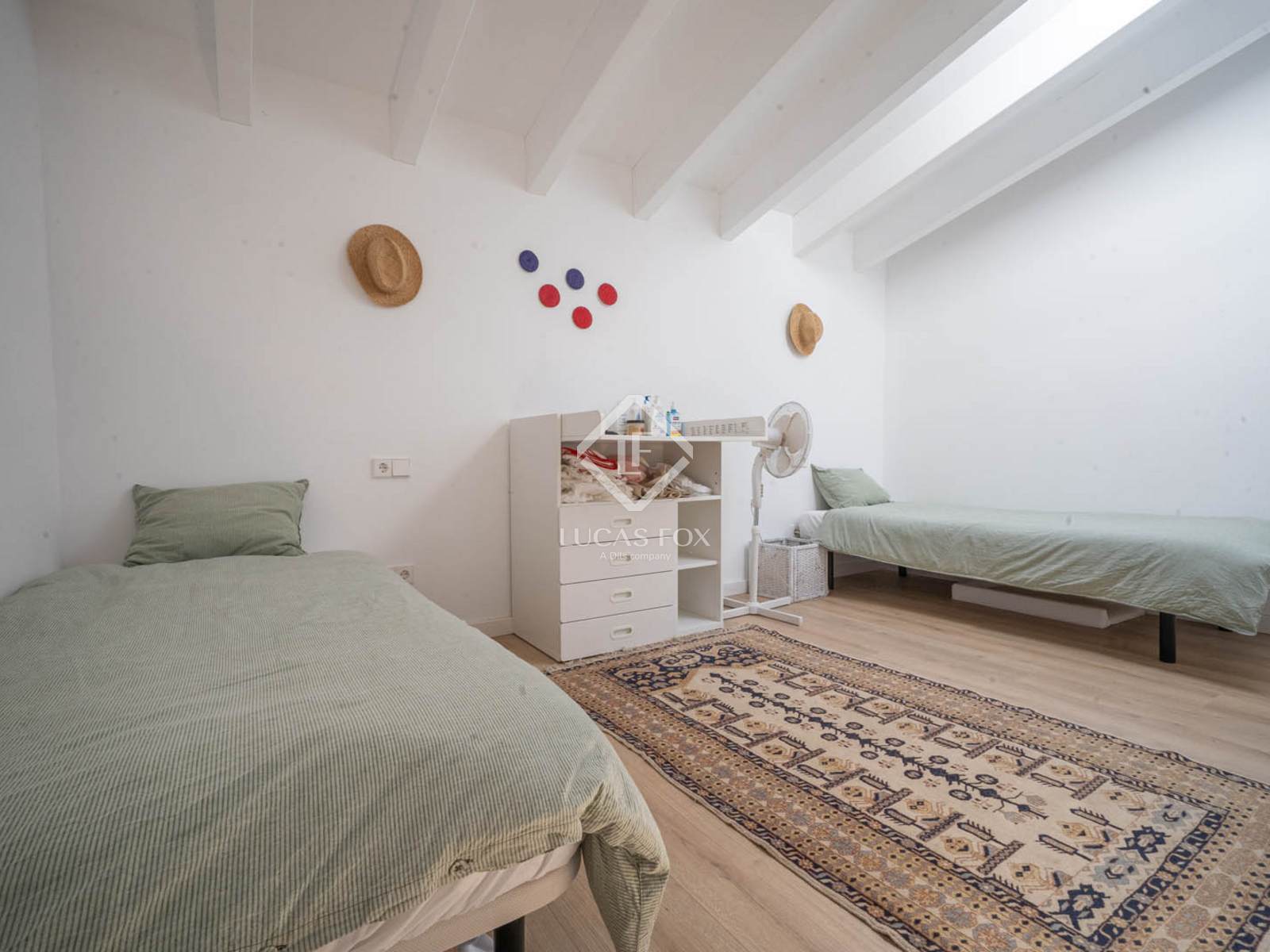 A designer staircase leads to a large mezzanine converted into a reading room, which can also be used as an office or children's playroom. A hallway leads to a third bedroom with a bathroom and dressing room, a fourth bedroom, and the independent master suite, featuring a bathroom, its own dressing room, and access to a private interior terrace.