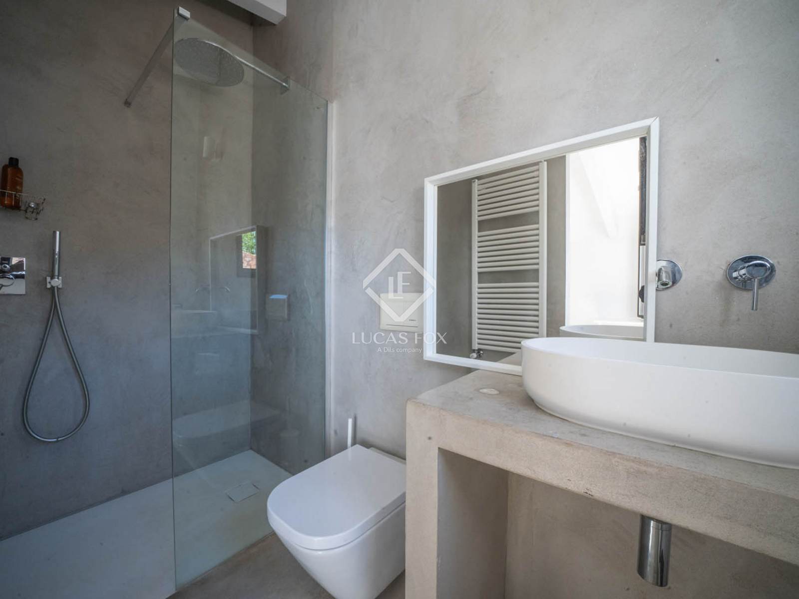 Outside, the finca offers several intimate nooks to fully enjoy the setting. Directly connected to the kitchen and living room, a beautiful dining area, surrounded by Mediterranean vegetation, ensures pleasant coolness during the warmer months. An above-ground pool, surrounded by natural stone and featuring a wooden deck, will allow you to cool off and perfect your tan. Meditation and yoga enthusiasts will appreciate the wooden deck specifically designed for these activities. The rest of the land leaves room for your imagination to create a landscaped garden.