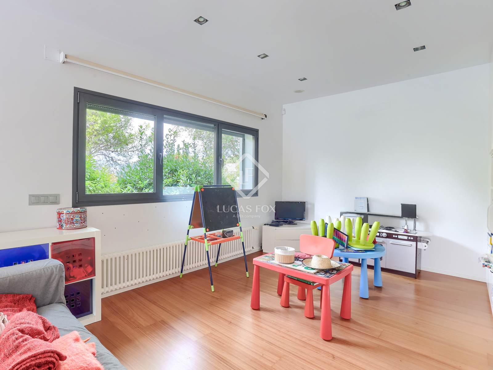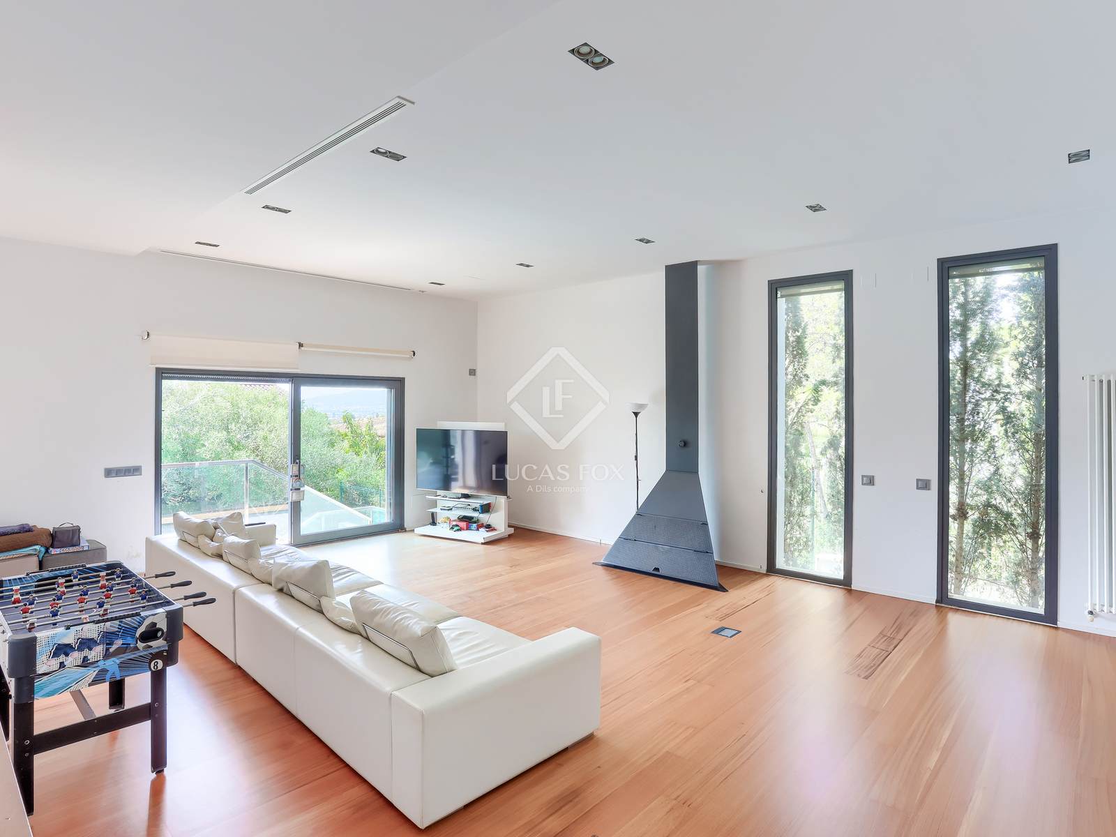 The spacious and bright main living room includes a cozy fireplace and direct access to a beautiful garden with a generously sized pool, ideal for enjoying the beautiful Mallorcan climate. The bright kitchen is designed for everyday family life, while the separate dining room is perfect for hosting unforgettable dinners and evenings with friends and family.