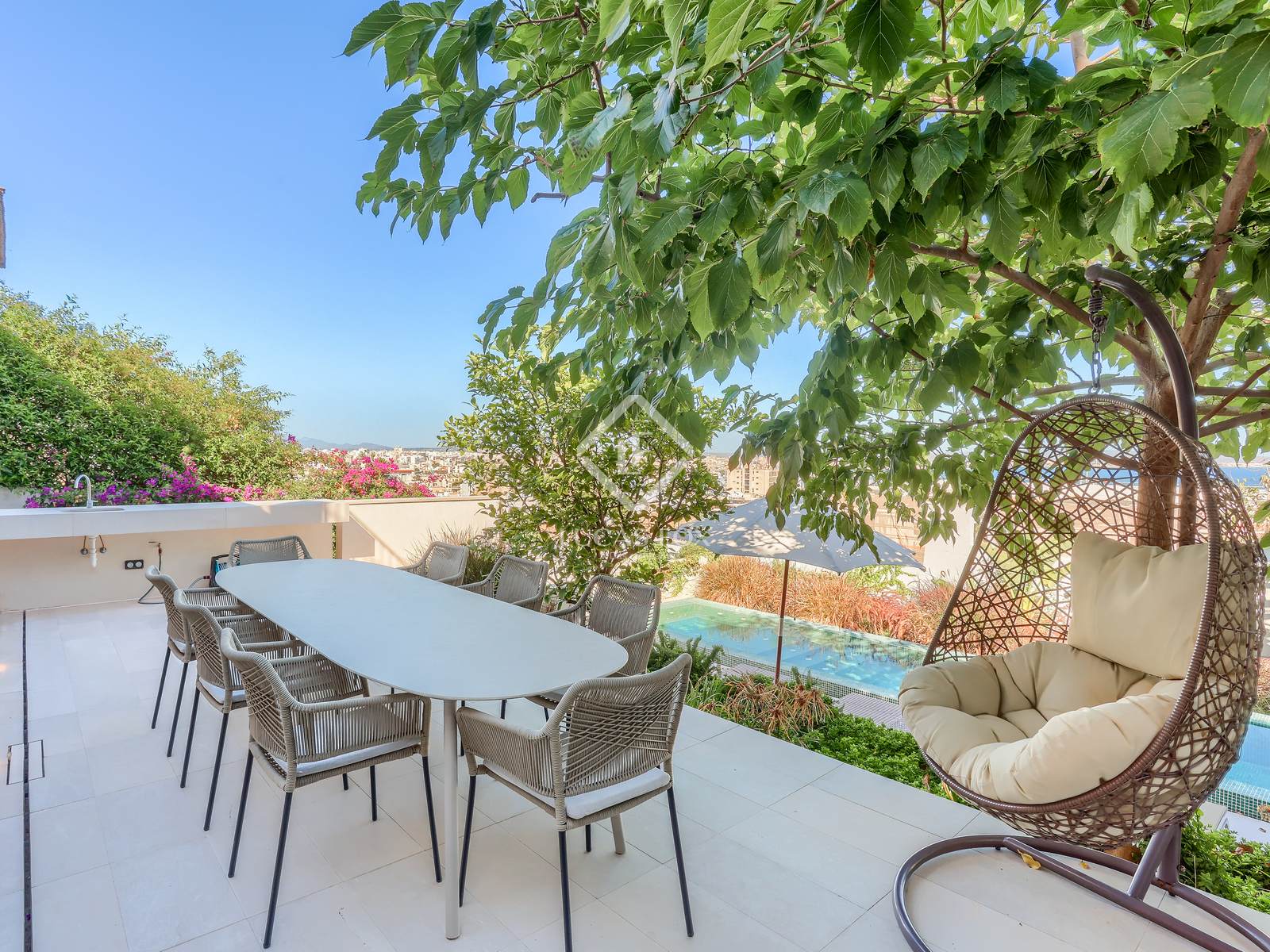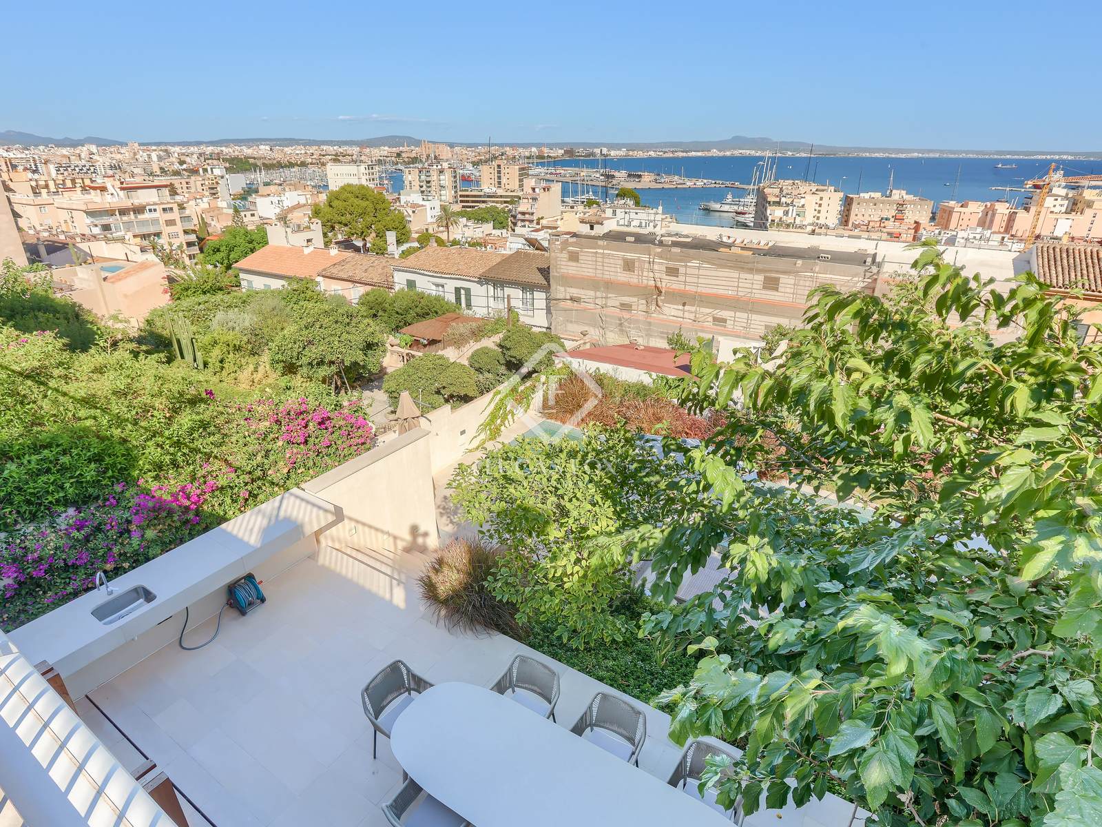 Lucas Fox presents this exclusive villa in El Terreno, Palma, with spectacular views, a tourist license, a swimming pool, terraces, a garage, and high-end finishes. A stylish retreat close to the center, beaches, and marinas.