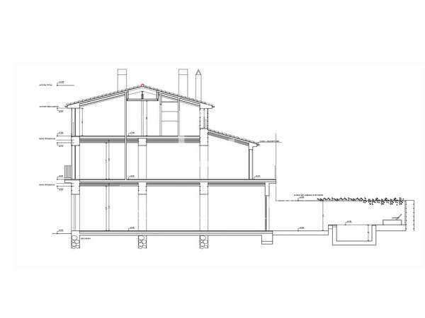 A separate building houses a private garage and a stylish guest suite with its own bathroom and sweeping views. Outside, the pool area invites you to relax with sun loungers, lush greenery, and a fully equipped summer kitchen with barbecue and a covered dining space.