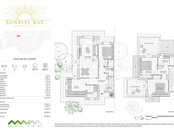 The villas, with areas of up to 150 m² and available in two, three and four bedroom layouts, have been designed to offer a perfect balance between functionality, comfort and Mediterranean lifestyle.