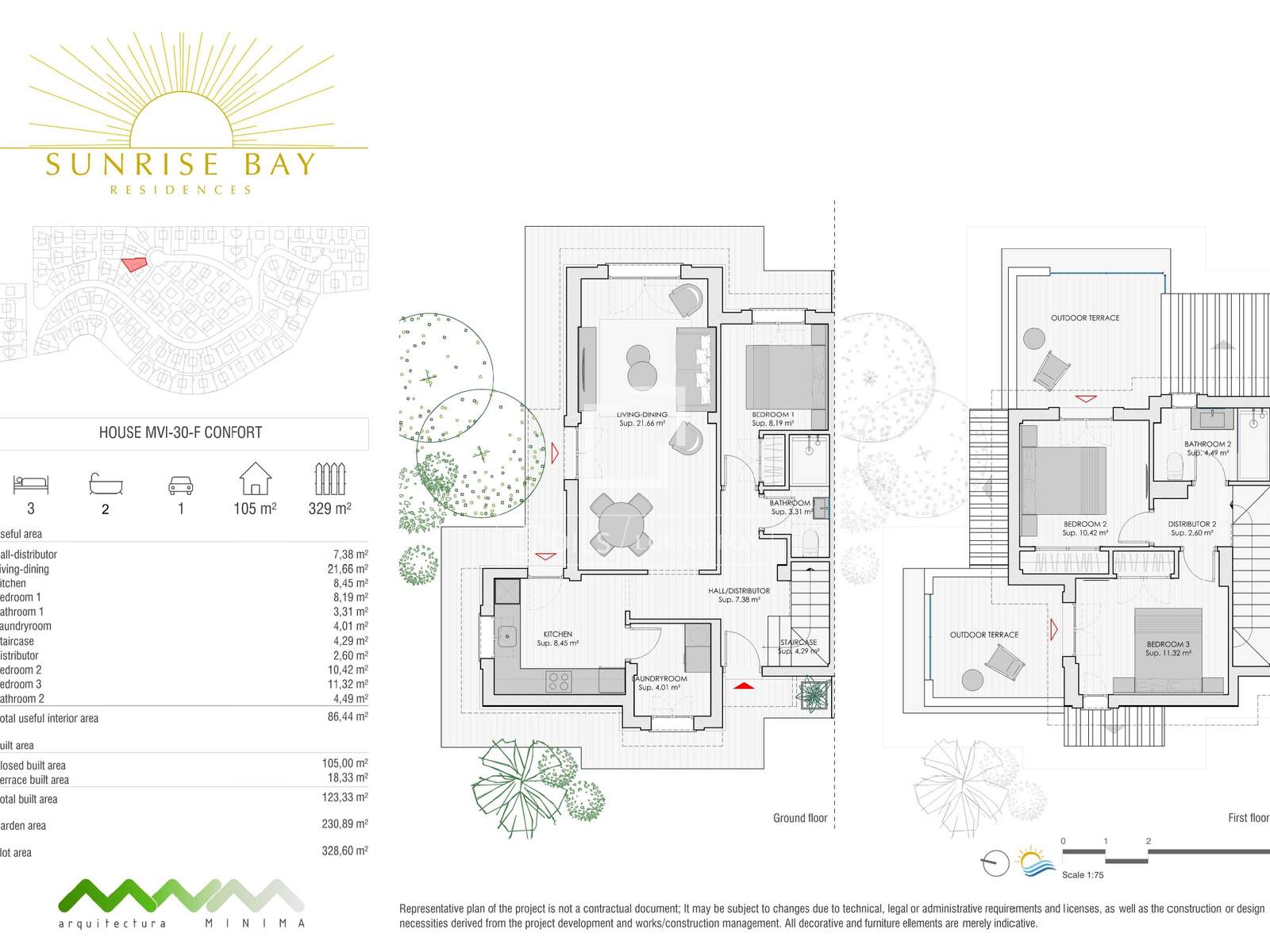 The villas, with areas of up to 150 m² and available in two, three and four bedroom layouts, have been designed to offer a perfect balance between functionality, comfort and Mediterranean lifestyle.