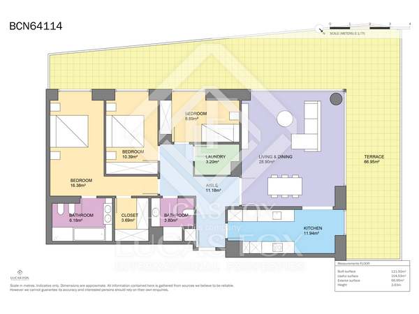 This property is on the fourth floor and measures 128 m², with a 38 m² terrace, 2 bedrooms and 2 bathrooms. It also has a storage rooms and parking spaces, included in the price.