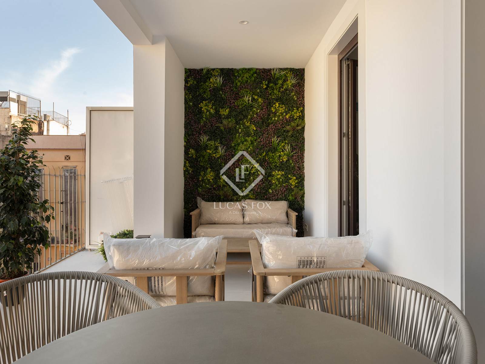 Currently undergoing a full, high-end renovation, this 140.5 m² with a private 18 m² terrace apartment blends the grandeur of classic Barcelona architecture with contemporary elegance. Located within a stunning historic building, the property retains its original charm through soaring ceilings and period details, while offering all the comforts of modern living. The apartment will be delivered fully furnished with tasteful designer pieces, ready for immediate enjoyment.