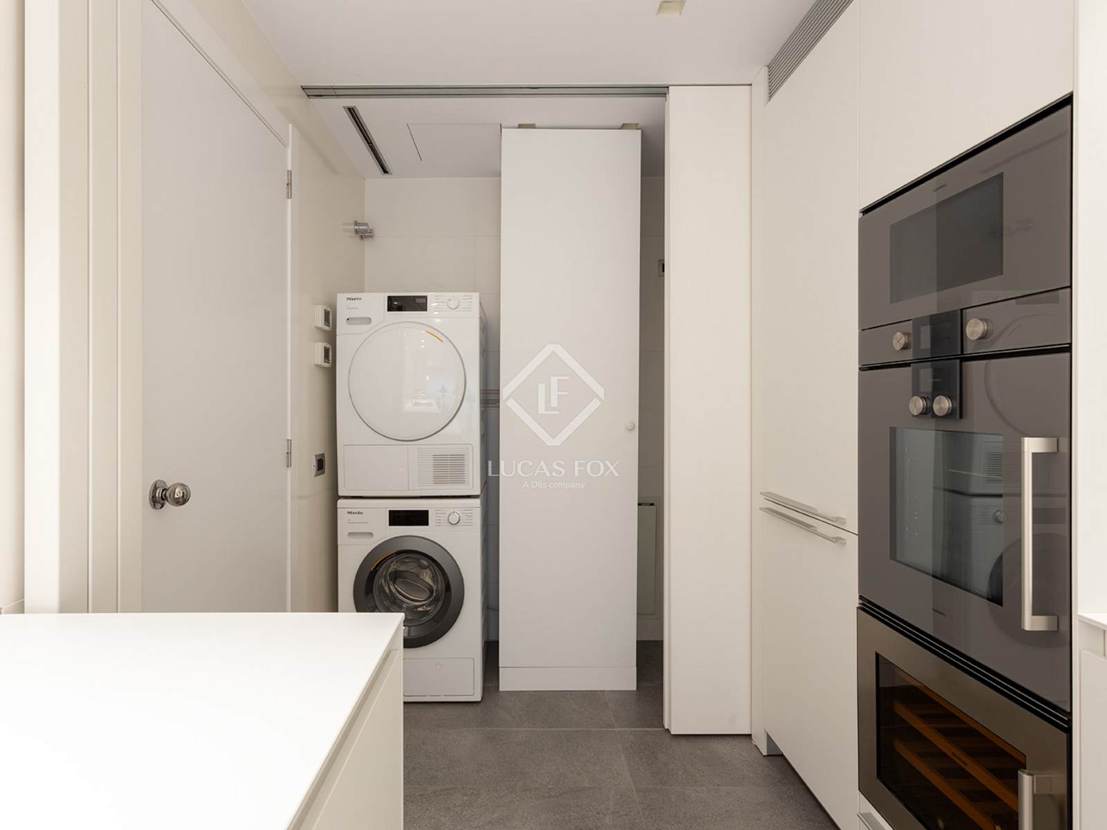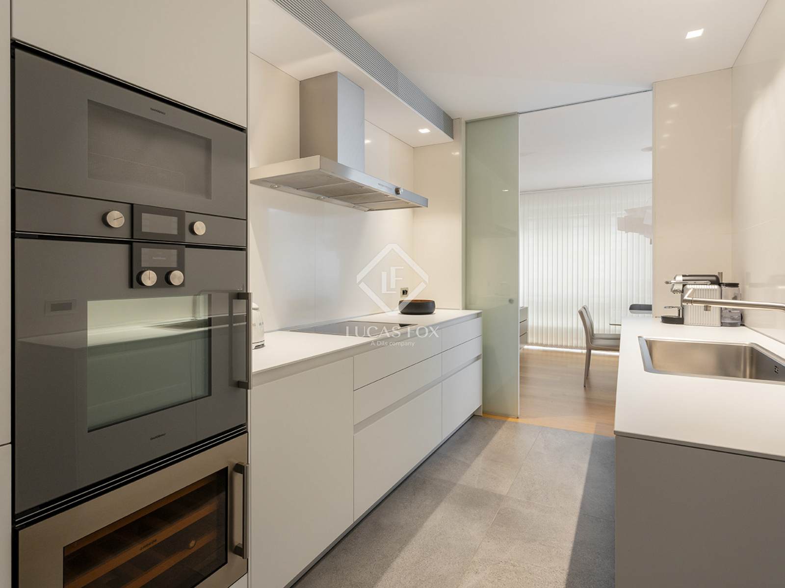 The property 's interior has been designed to convey spaciousness, light, and sophistication in every corner. The kitchen, equipped with high-end Gaggenau appliances , is complemented by Bulthaup cabinetry, countertops, sink, and faucets, offering a functional yet exquisitely designed space. The Silestone kitchen and bathroom wall tiles, along with large-format porcelain stoneware flooring, provide a modern and enduring aesthetic.