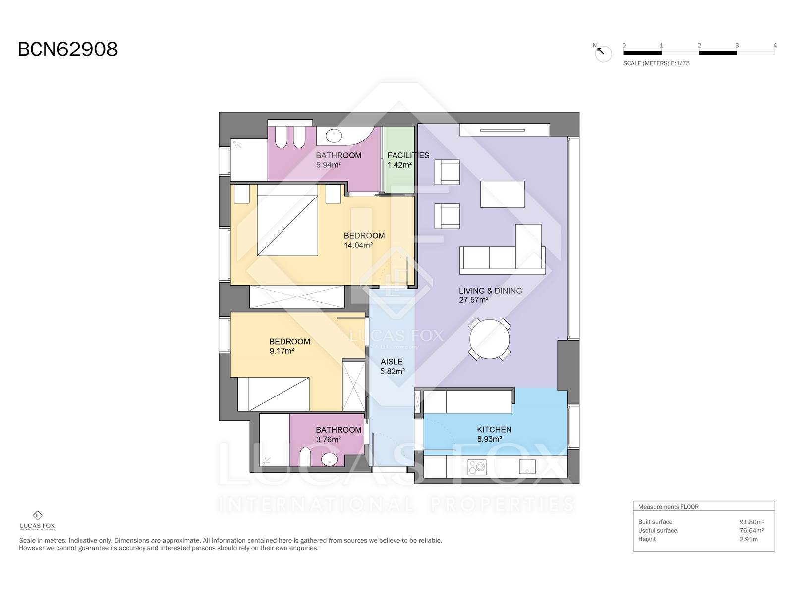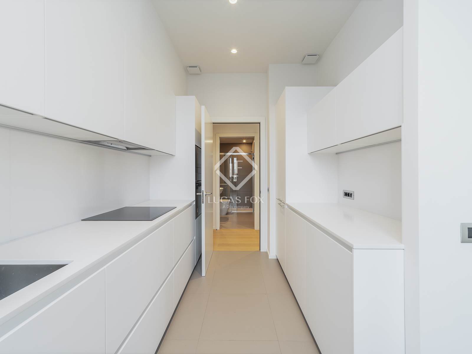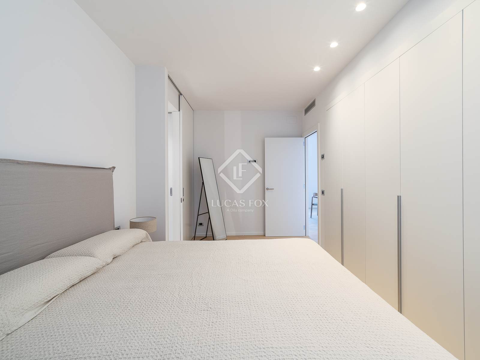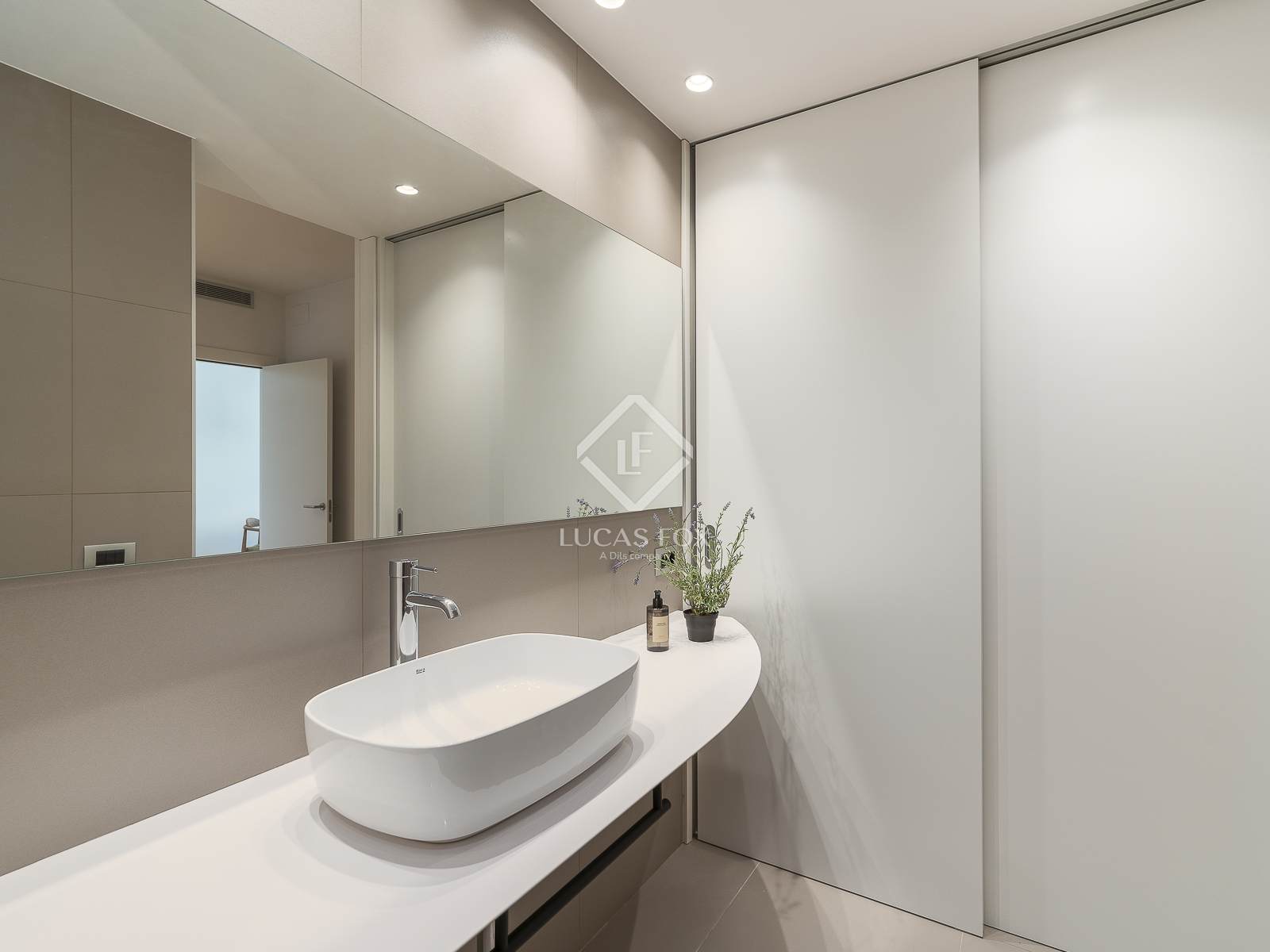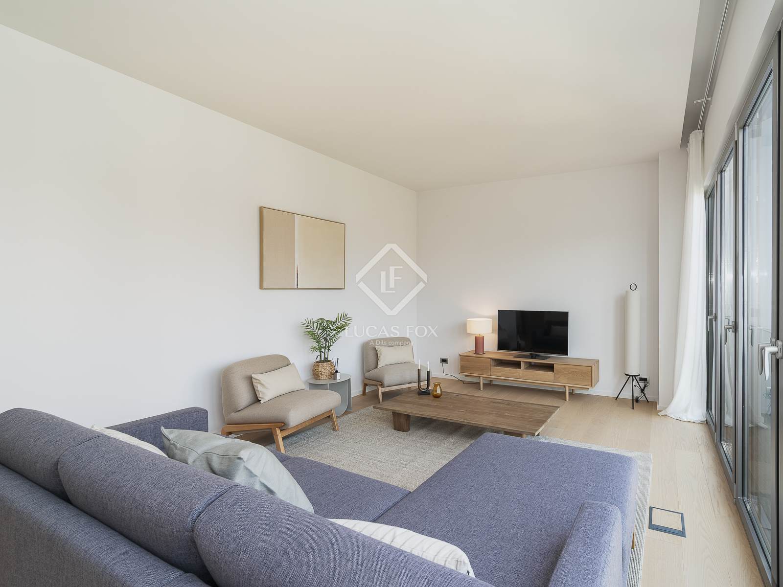 This particular unit is one of four standard two-bedroom homes located in the interior part of the building, ensuring a quiet and private residence. While the interior is newly constructed, the building retains the striking original main staircase and its skylight, preserving the graceful presence of a historical Barcelona building.