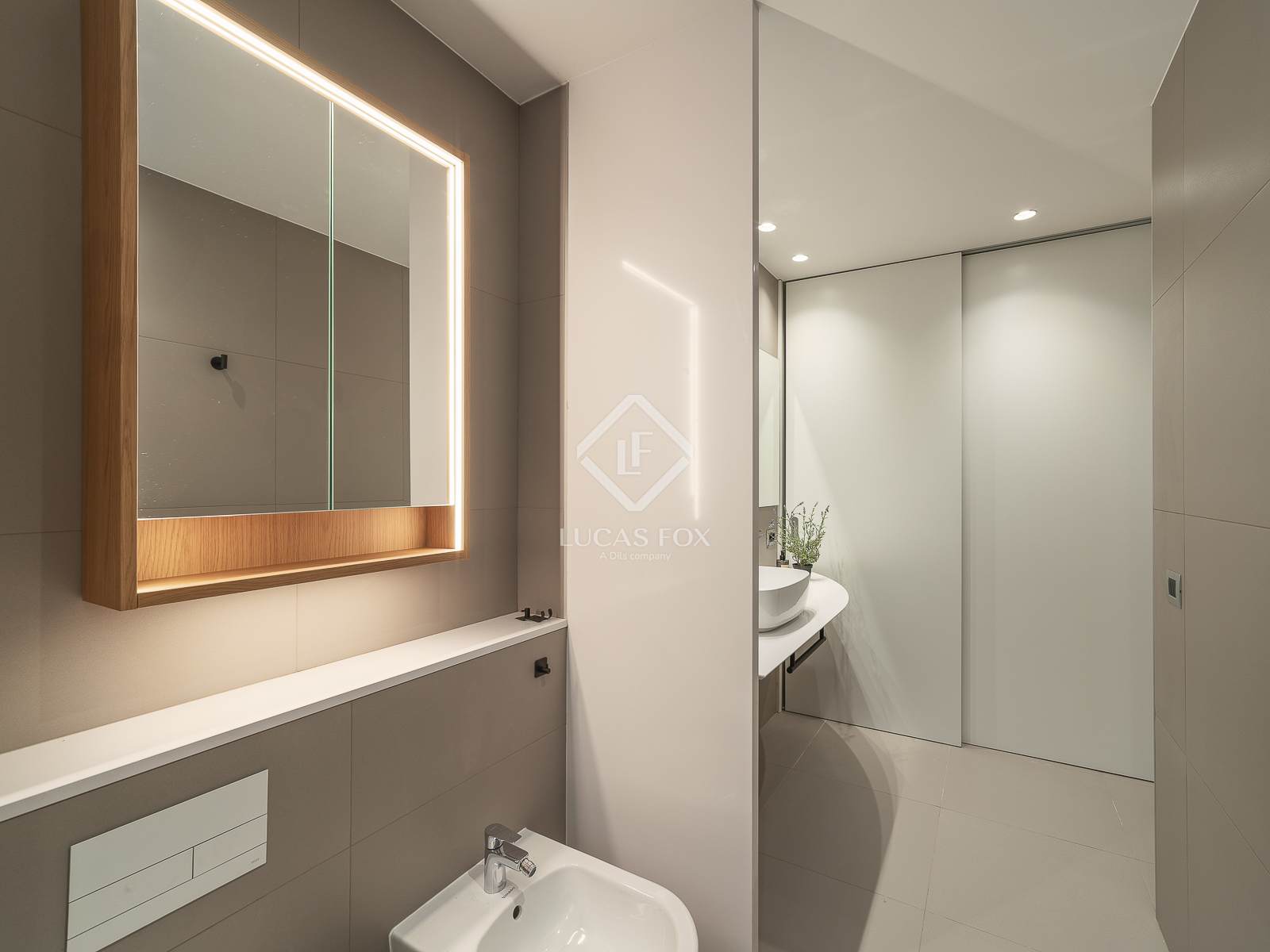 The property boasts premium quality finishes, including beautiful natural wood floors, a fully equipped kitchen, and the latest in sustainable climate control with an aerothermal system and luxurious underfloor heating.