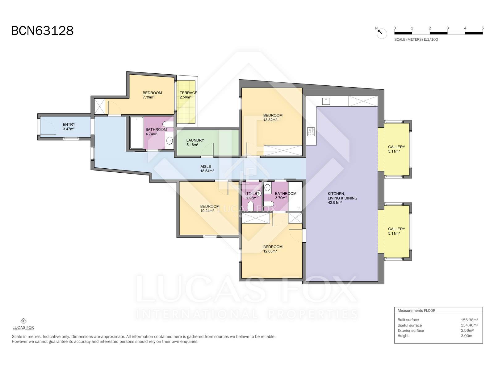 Newly renovated 158 m² luxury apartment in Barcelona’s Eixample, blending modern design with historic charm. Features 4 bedrooms, 3 bathrooms, high ceilings, smart lighting, premium finishes, and open-plan living area, steps from top shopping and dining.