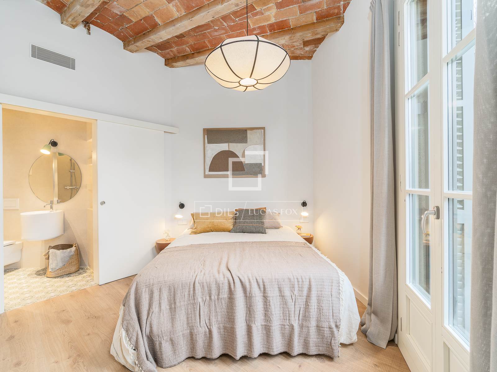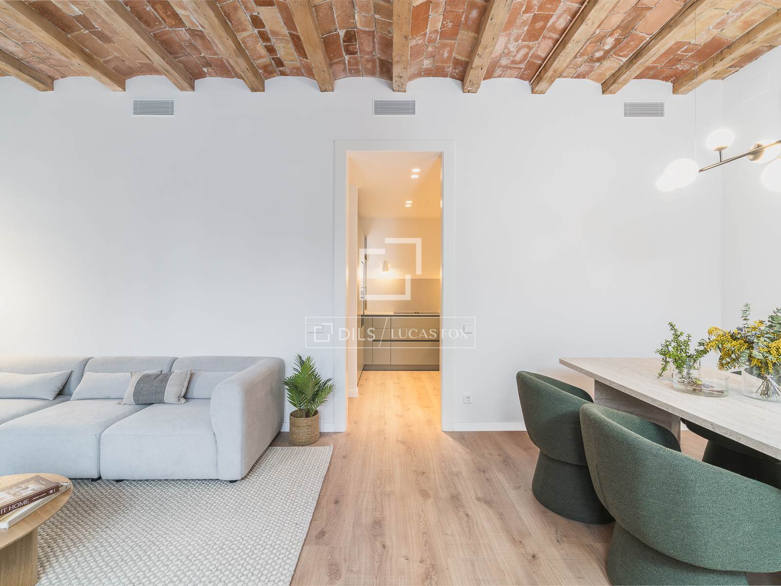 Located on the second floor (third floor in US/UK terms), this apartment boasts several balconies that provide abundant natural light thanks to its corner location. The comprehensive refurbishment has focused on meticulous attention to detail, preserving original architectural elements such as the Catalan vaulting in the living room.