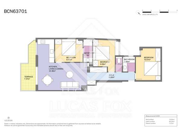 73m² apartment with 7m² terrace for sale in Eixample Right