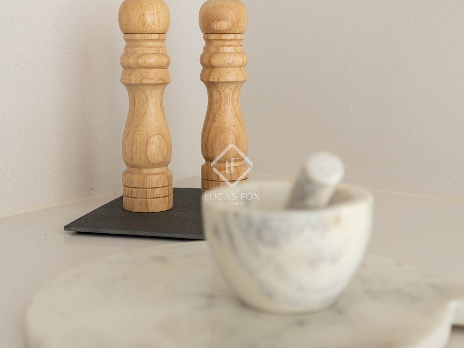 This property is sold unfurnished. The images correspond to the furnished show apartment of the development; the furniture can be purchased separately for an additional €30,000.